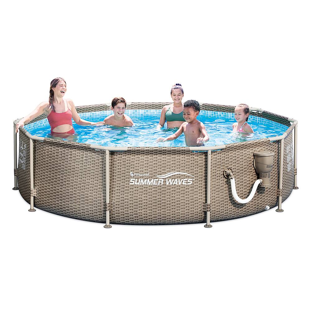 Round pool measures 10 feet in diameter and 2.5 feet deep for a 1,266-gallon water capacity and is ready for water in as little as 60 minutes