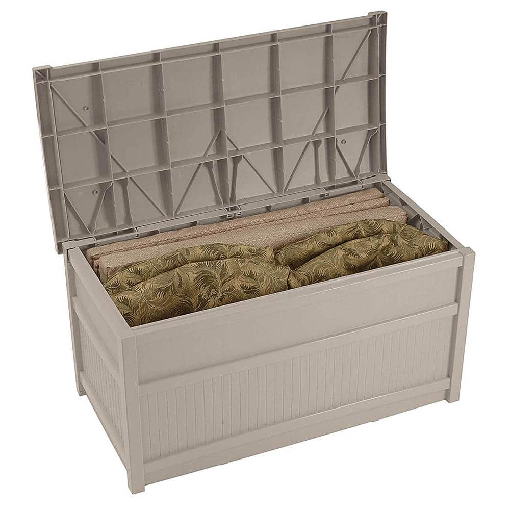 Suncast - Horizontal 50 Gallon Stay Dry Resin Outdoor Deck Storage Box with Seat