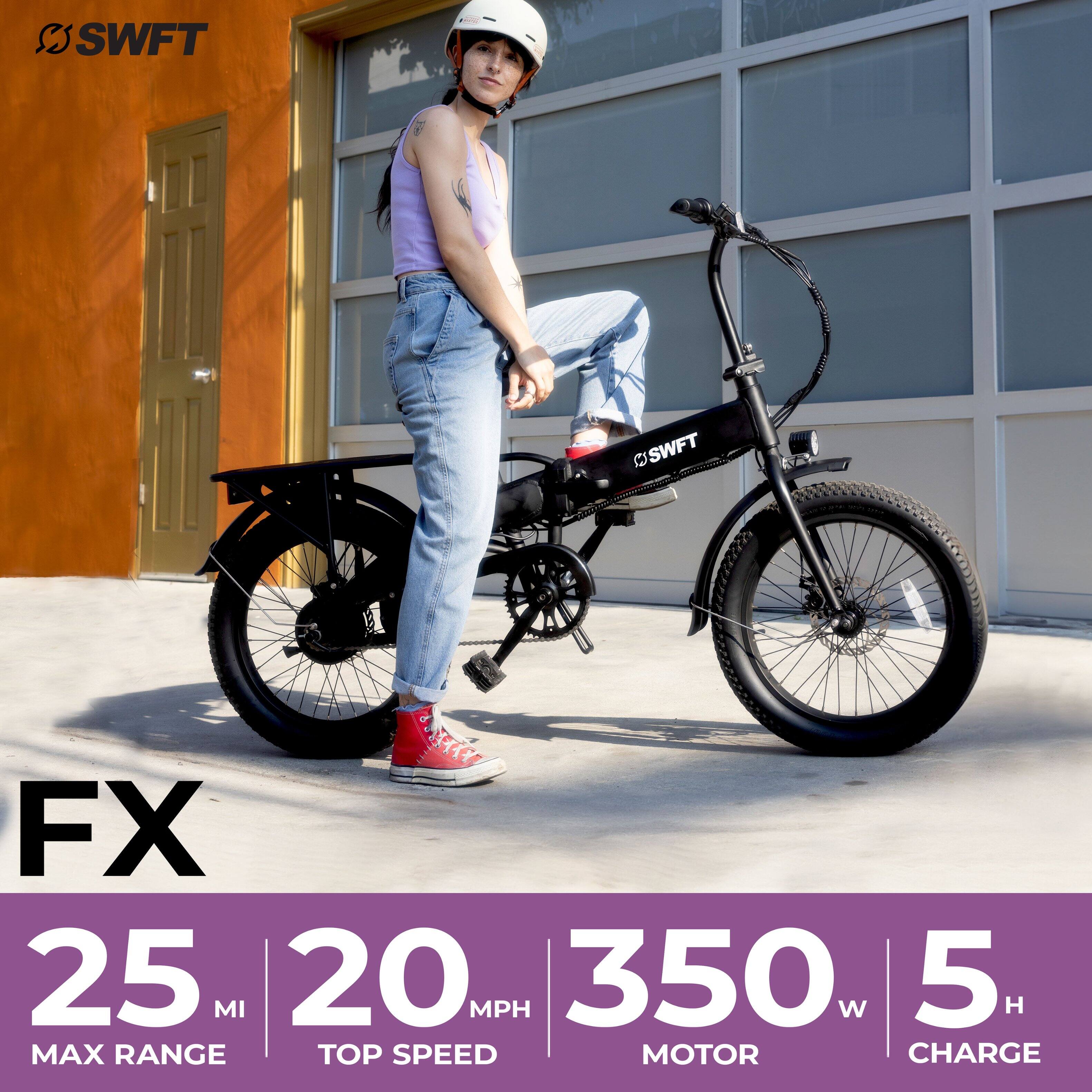 - A:Answer The SWFT F.X E-Bike can reach a maximum speed of 20 mph.