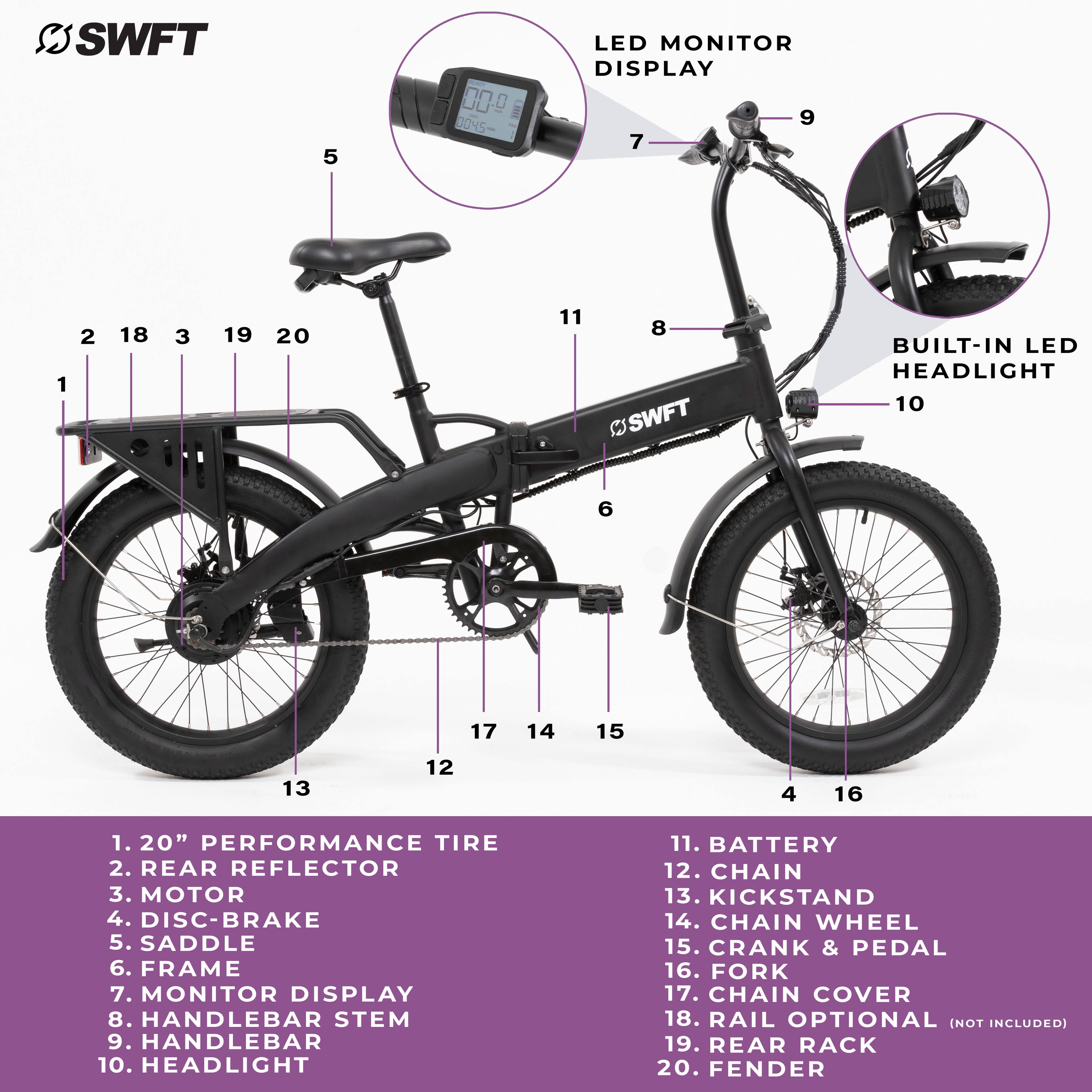 - A:Answer Yes, the SWFT F.X E-Bike has a foldable design for easy storage and transport.