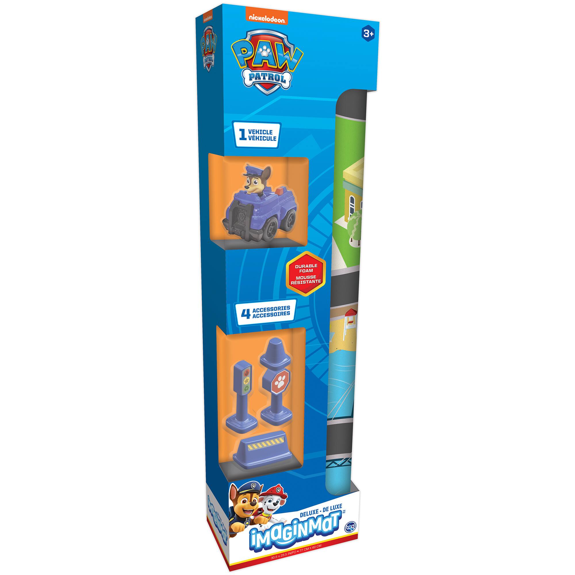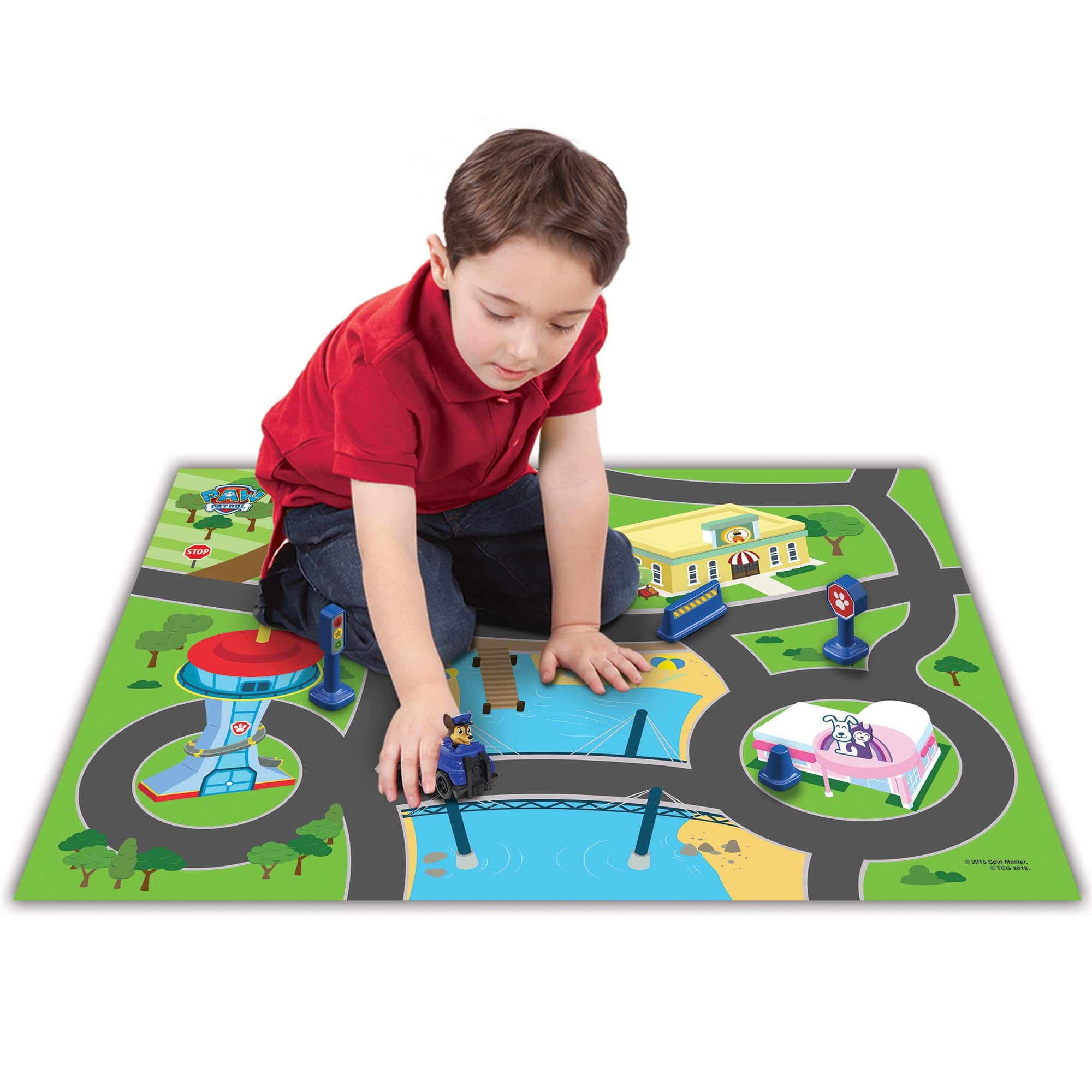 - A:Answer The playmat includes a character vehicle and four road accessories: a traffic light, stop sign, pylon, and caution sign.