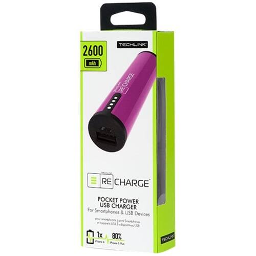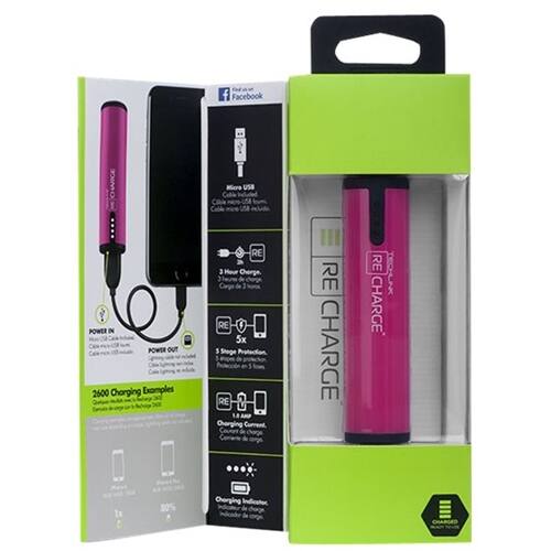 Techlink - Recharge 2600 mAh Portable Charger - Pink