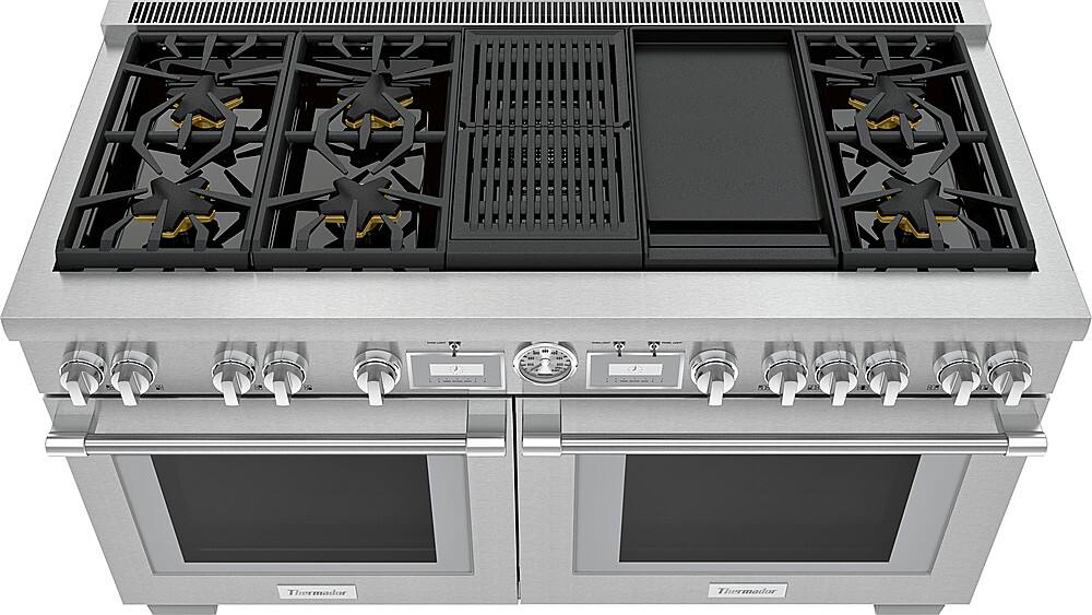 Thermador - ProGrand 10.6 Cu. Ft. Self-Cleaning Freestanding Double Oven Dual Fuel Convection Range - Liquid Propane Convertible - Stainless Steel
