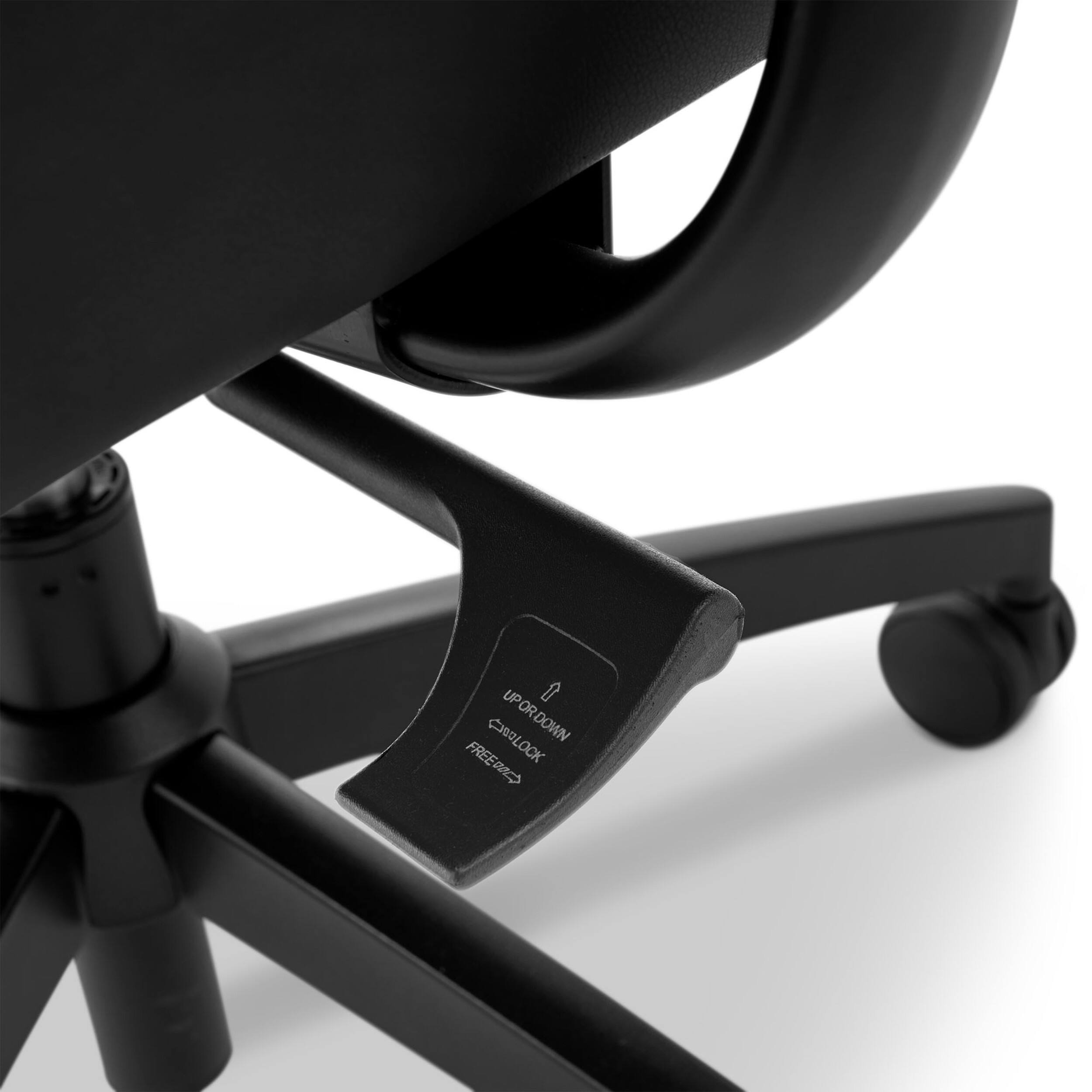 - A:Answer This chair has a pneumatic height adjustment feature.
