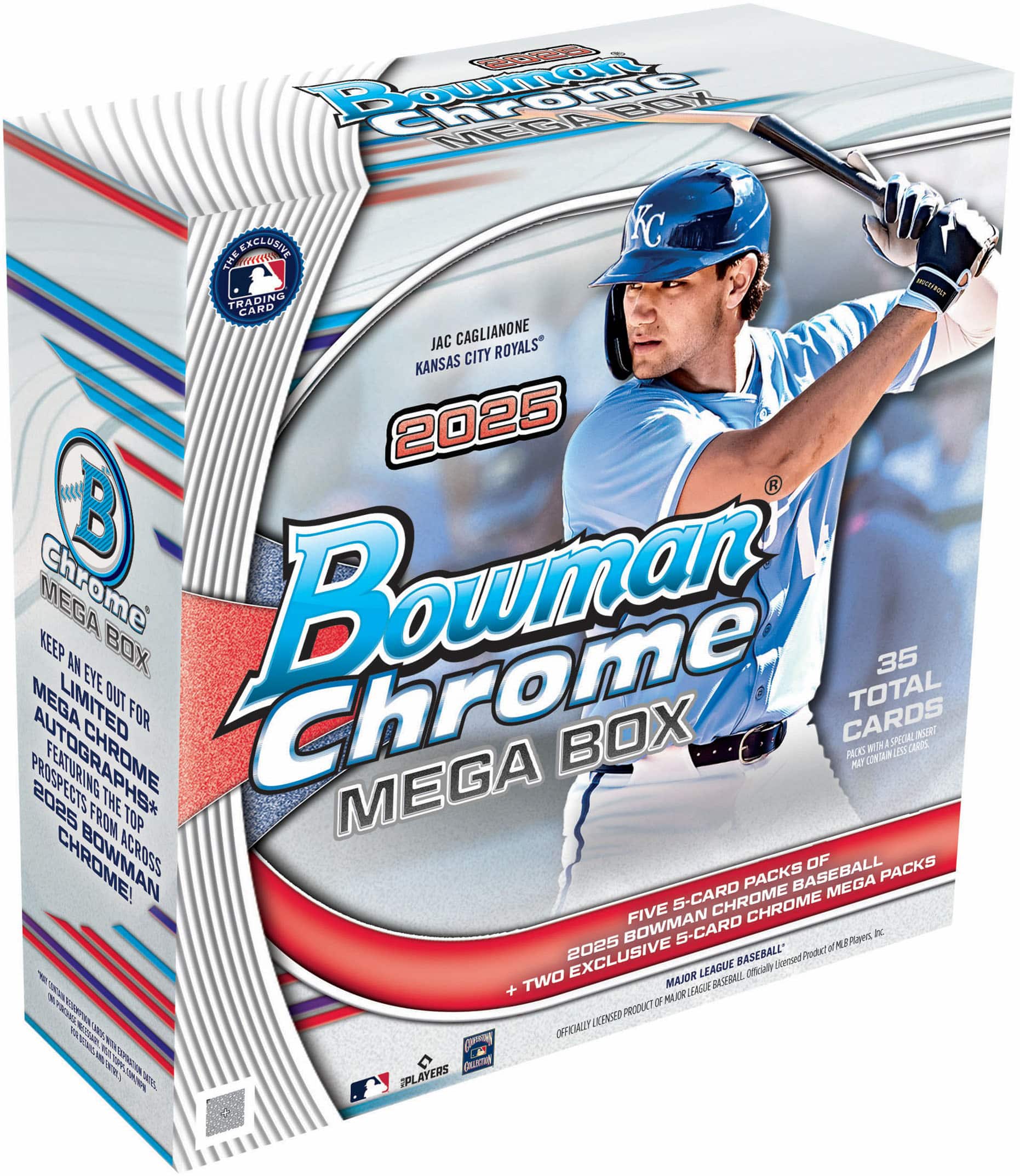- A:Answer The 2025 Bowman Chrome Baseball Mega Box features the top-100 Base Set and Chrome Prospect cards from 2025 Bowman Chrome Baseball on exclusive Mega Chrome pattern.