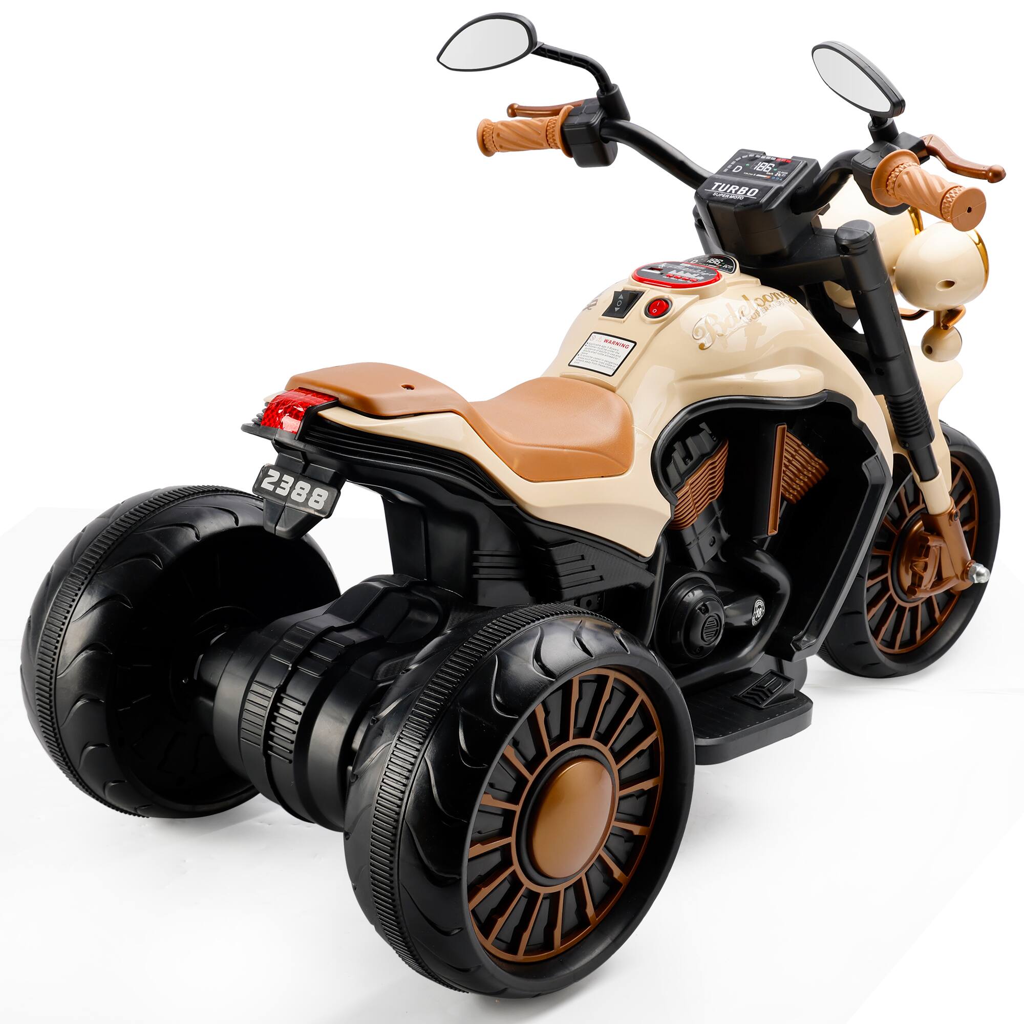 Topteng - 3-Wheel Kids Electric Motorcycle with LED Light - Dual Drive, for Ages 3-8, All-Terrain used - Brown