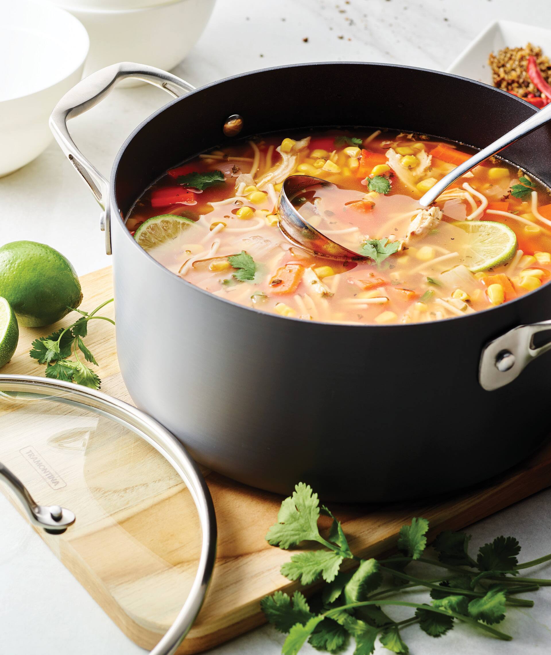 - A:Answer Yes, the interior coating of the Tramontina 8PC Hard Anodized Cookware Set is reinforced with a non-stick material that is made without PFOA, lead, or cadmium, ensuring it is free from harmful substances.