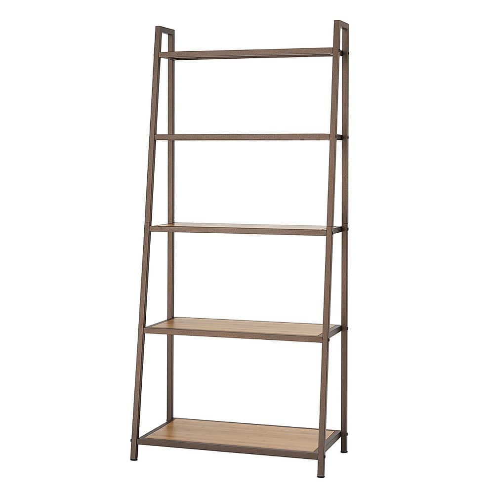 - A:Answer The leaning bamboo rack includes five shelves.