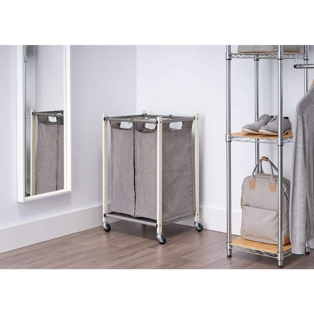 - A:Answer This laundry cart comes with two removable laundry bags.