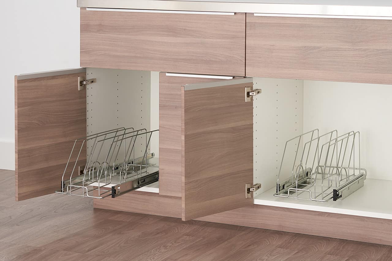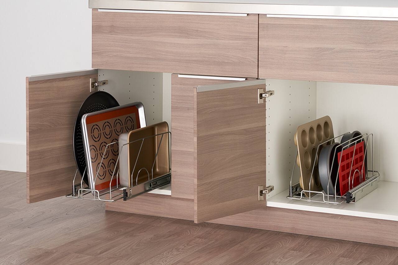 - A:Answer You will need a cabinet that is at least 12 inches wide to install the organizer.