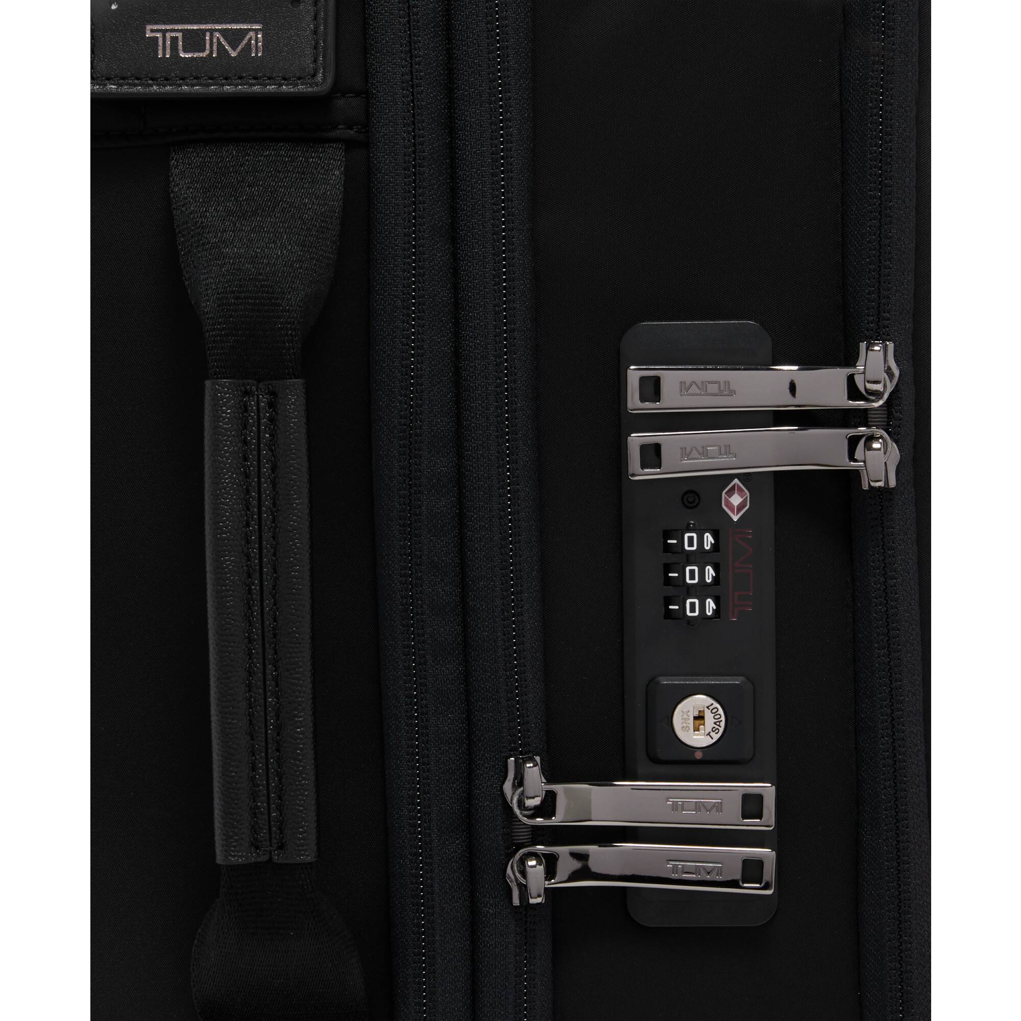 • Answer This carry-on luggage can be locked. It features a combination lock for added security.
