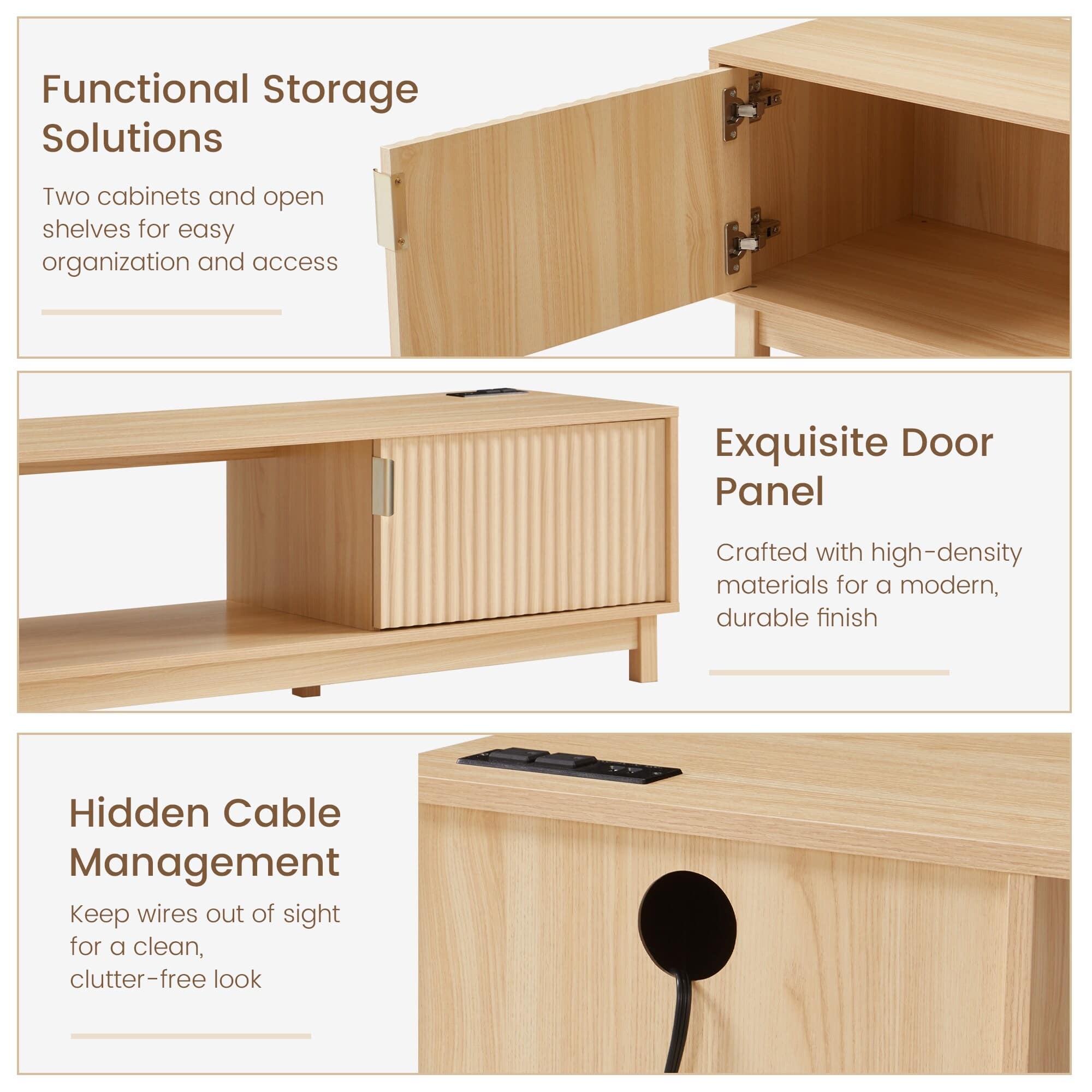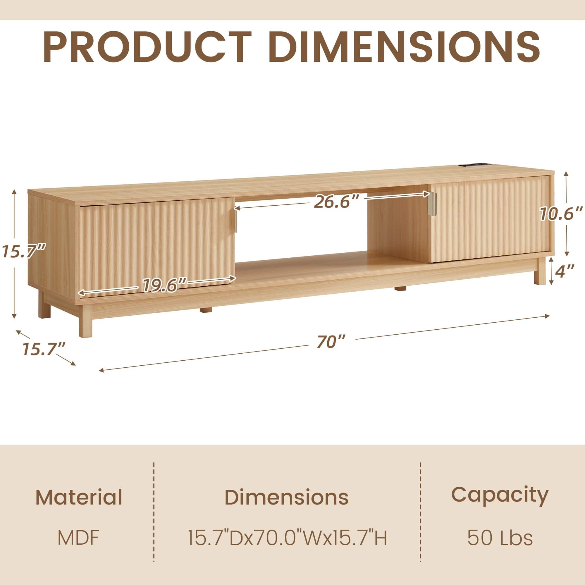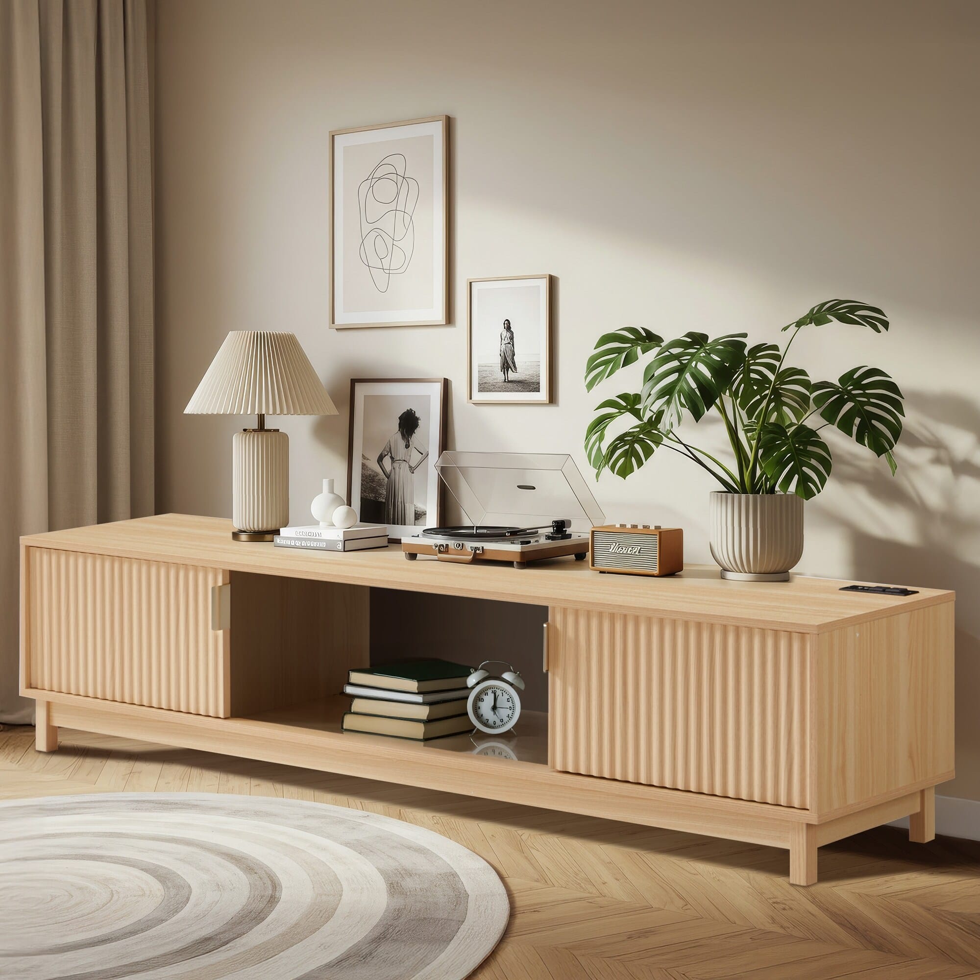 U-HOMY - Mid Century Modern TV Stand for 58/70 Inch TVs, Fluted Door Entertainment Center with Power Outlet & Storage - 70"