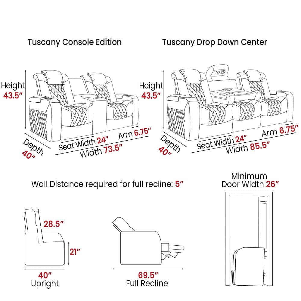 This question and answer was generated by AI based on customer and product data.QuestionWhat are the dimensions of the home theater seating?