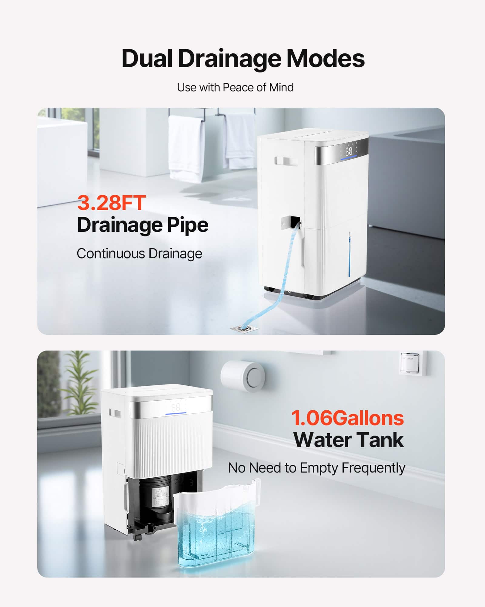 VEVOR - 80 Pints Dehumidifier for Home & Basement, Drain Hose for Commercial & Industrial Use, Smart Humidity Control, Low Noise - White