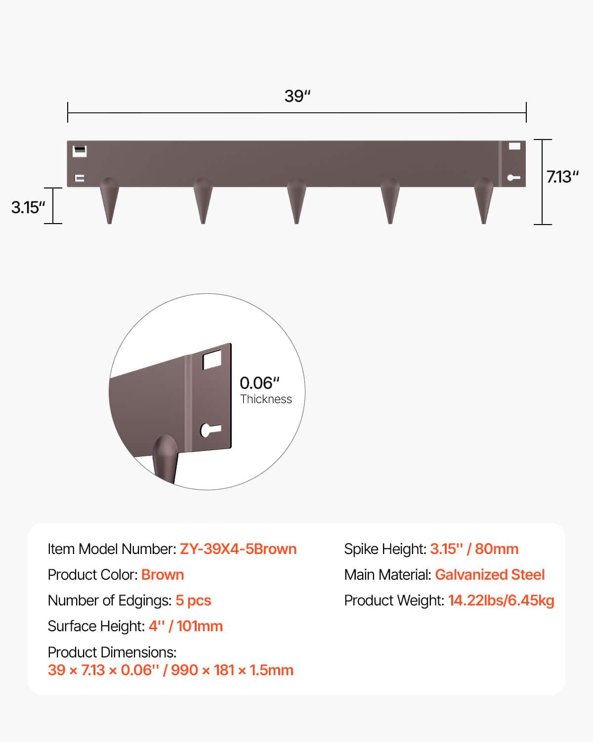 VEVOR - Steel Landscape Edging, 5 Packs 39 x 4 in Rust-Resistant Metal Landscape Edging, Bendable Garden Edging Border - Brown