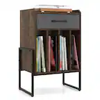 - A:Answer This Victrola Wooden Vinyl Record Crate can store over 50 records.