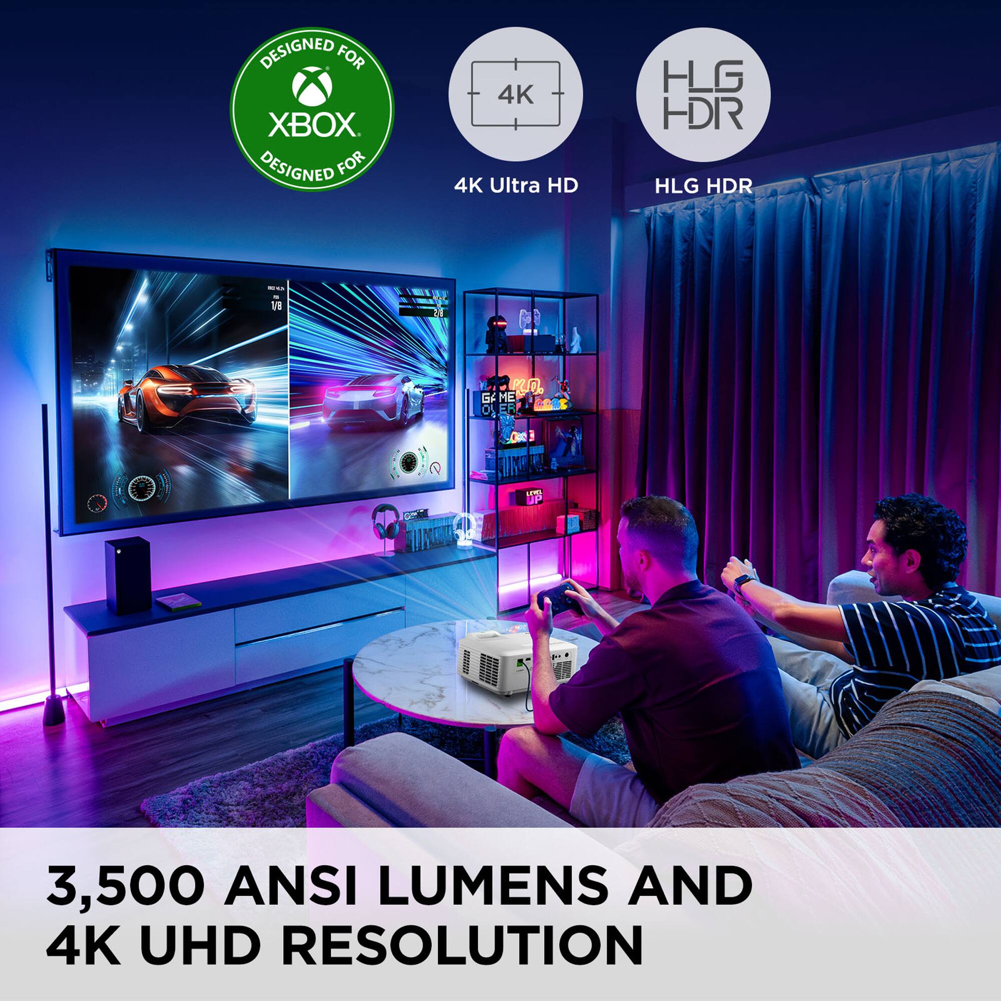- A:Answer This projector is suitable for rooms with high ambient lighting because it features 3,500 ANSI lumens of brightness.