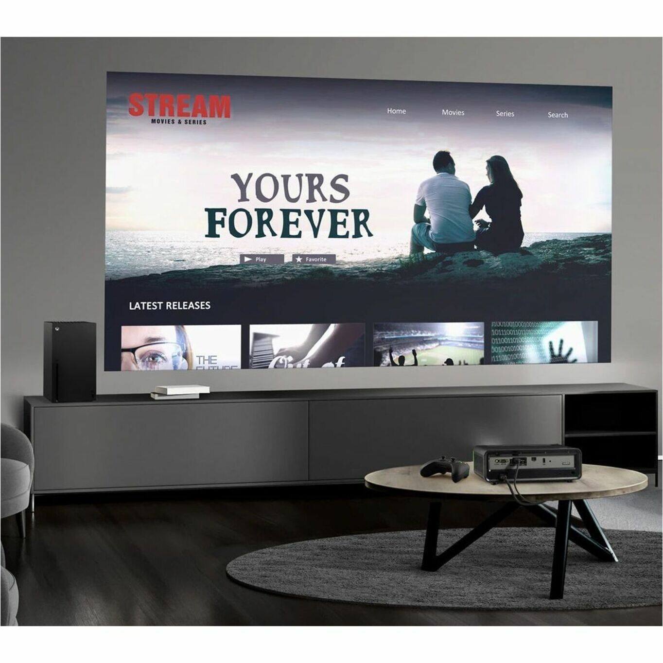 - A:Answer This projector allows you to enjoy your favorite content on screens up to 300 inches.