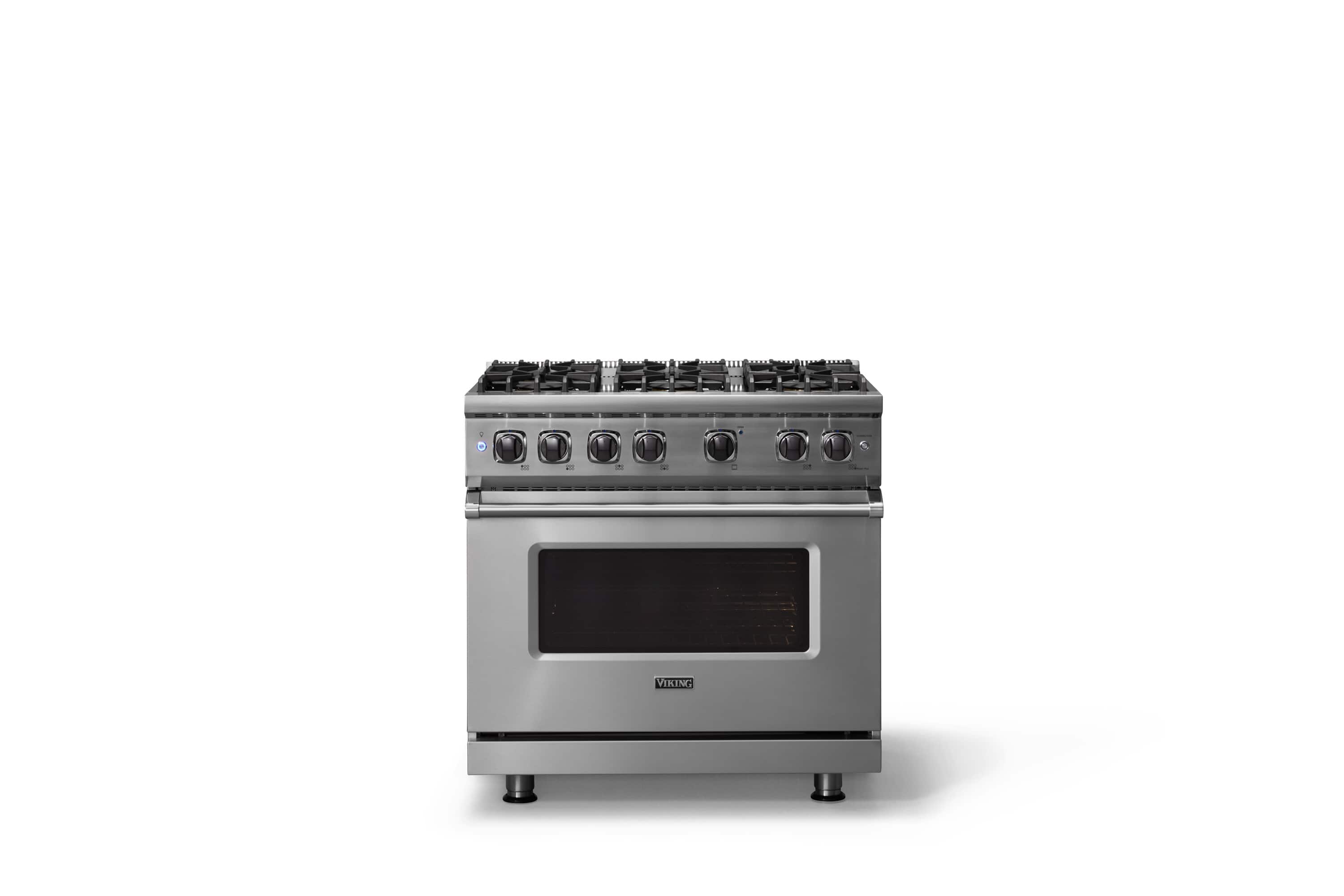 - A:Answer The Viking Professional 5 Series 5.1 Cu. Ft. Freestanding Gas Convection Range features a spacious cooktop with six burners, providing ample space and flexibility for various cooking needs. The burners include four 15,000 BTU burners, one 18,500 BTU power burner, and an optional griddle.