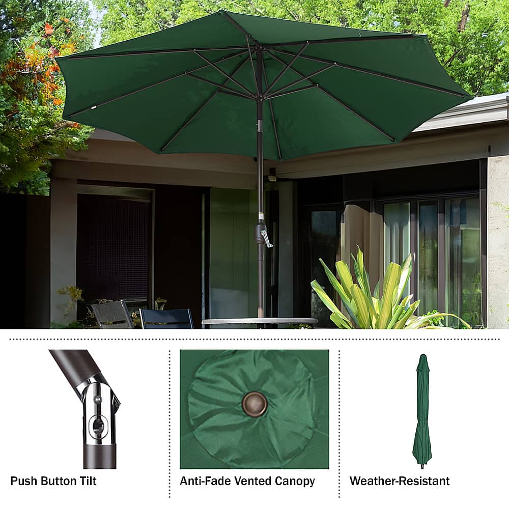 - A:Answer This umbrella has a convenient push button tilt feature allowing you to adjust the vertical tilt.