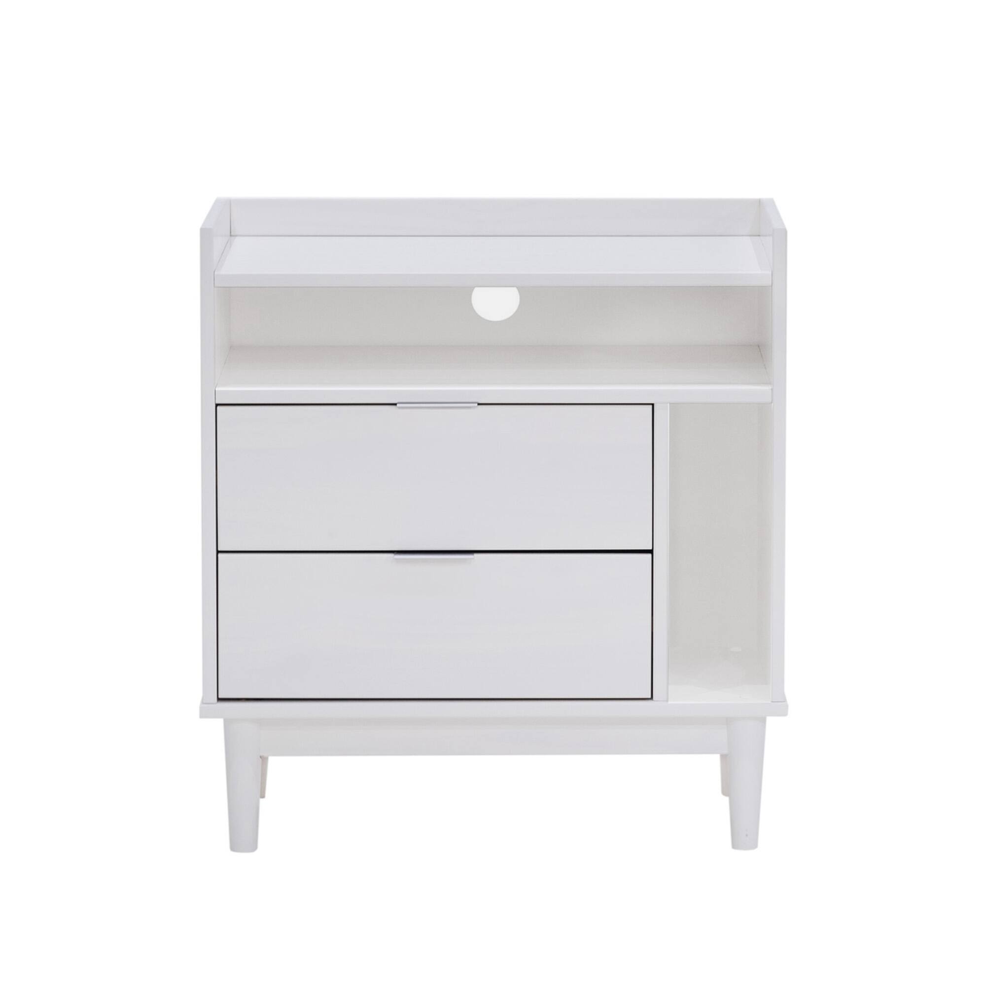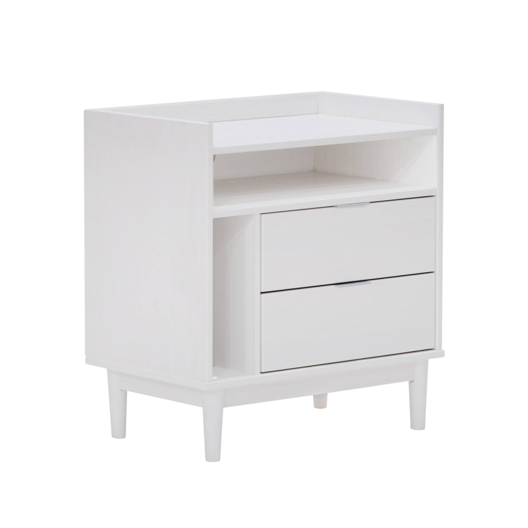 - A:Answer This nightstand features two spacious drawers.