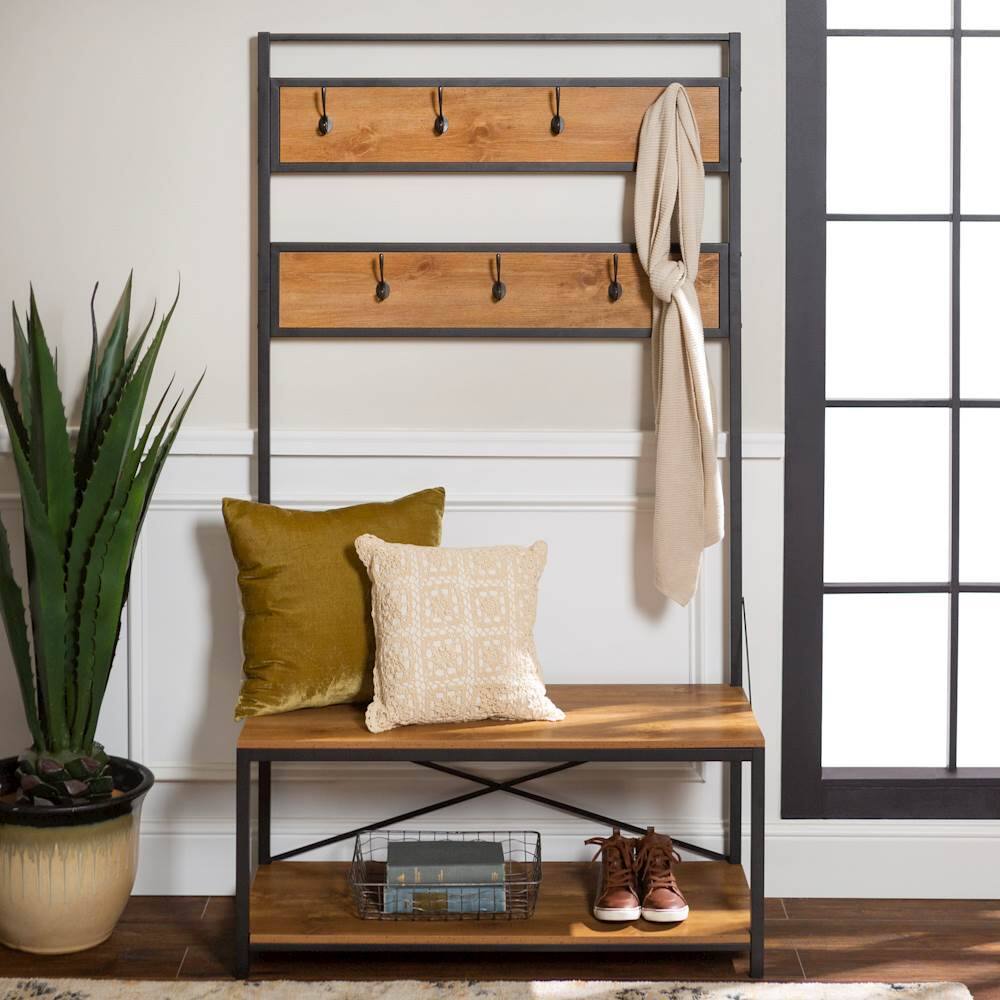 QuestionWhat is the material used for the frame of the hall tree?