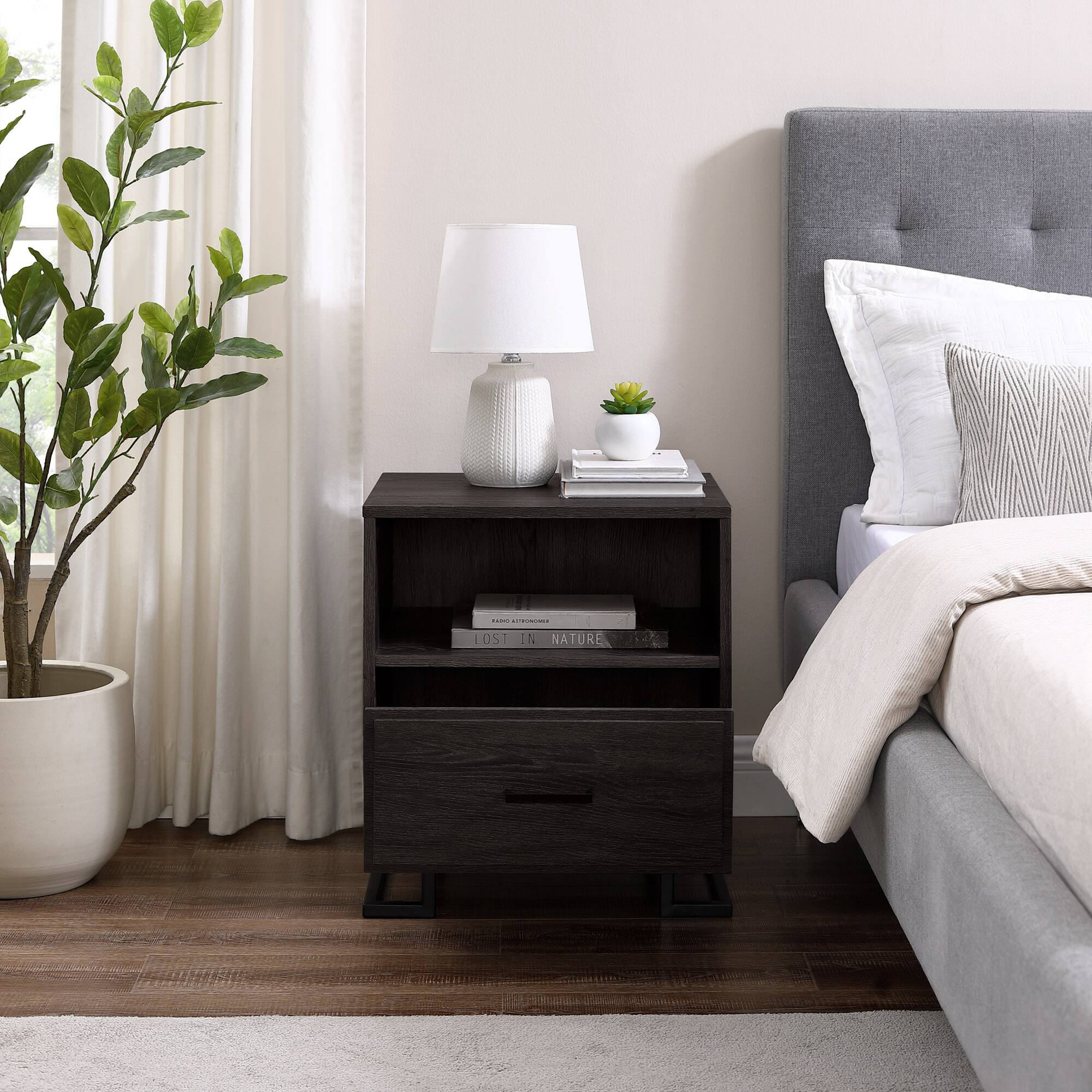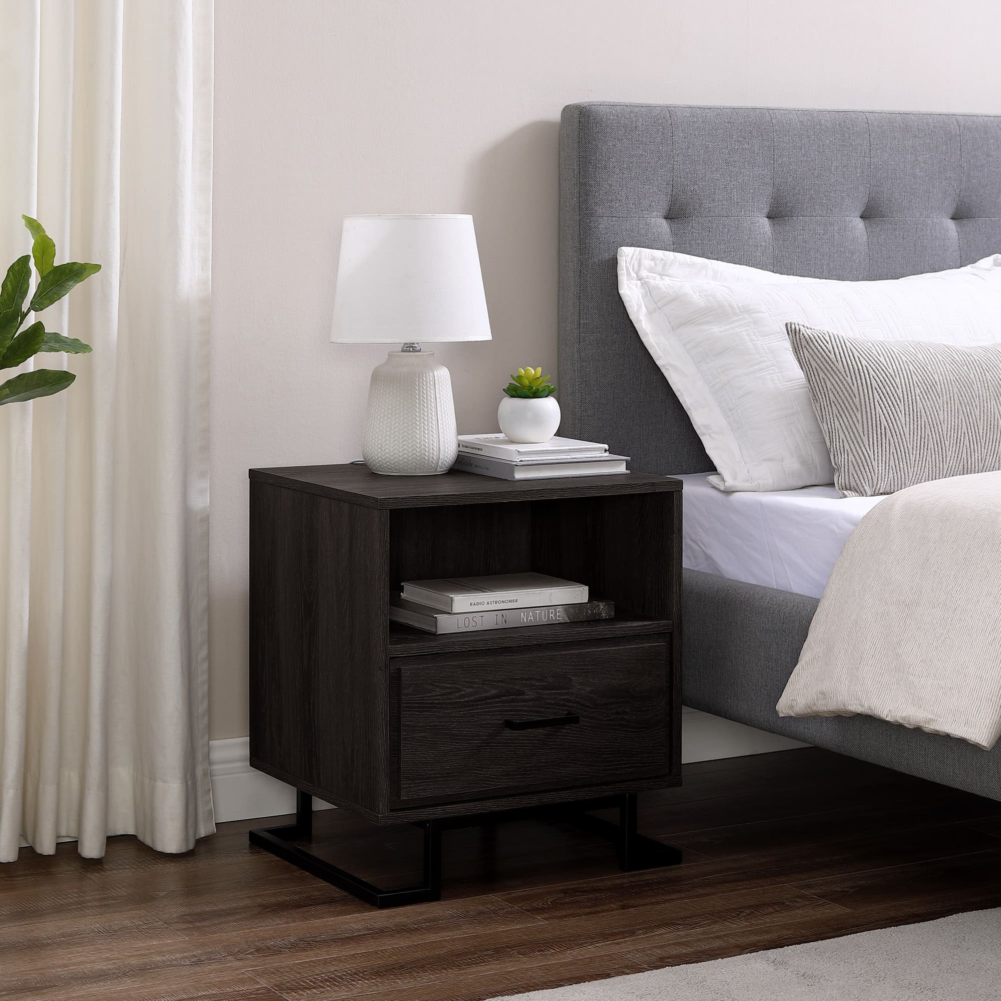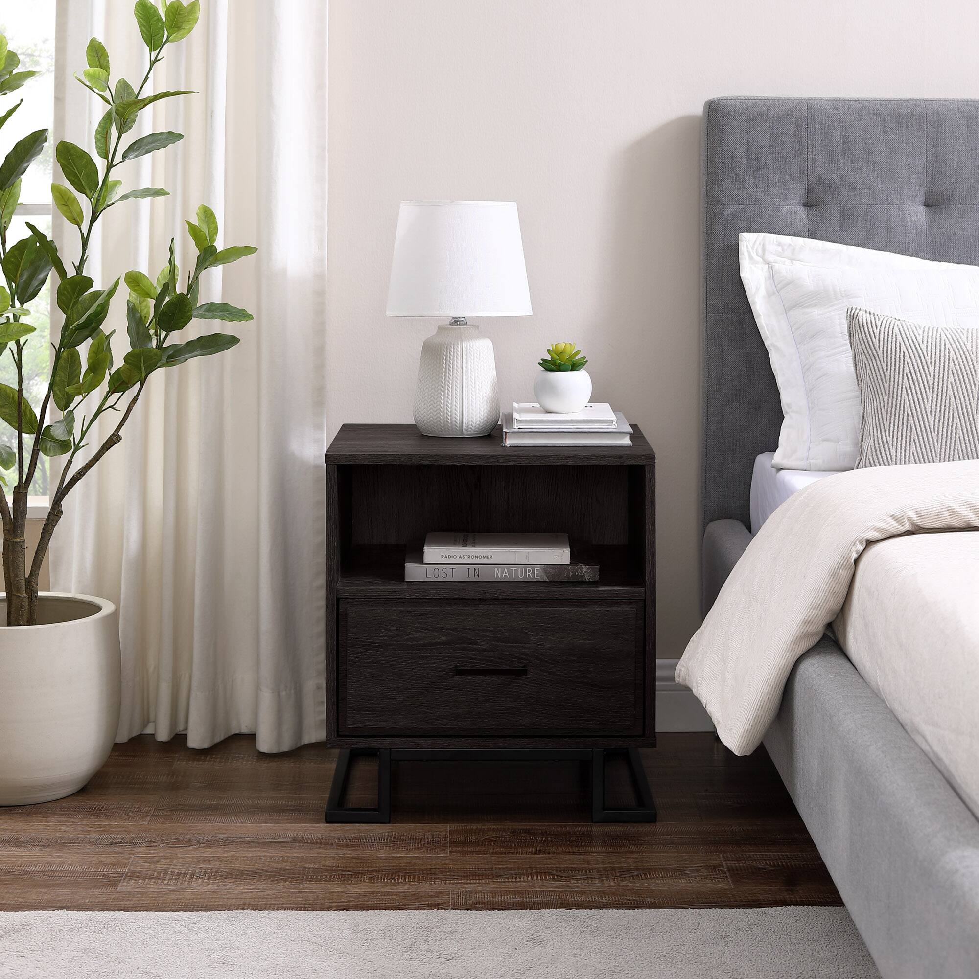 - A:Answer The Contemporary 1-Drawer Metal and Wood Nightstand weighs 40 pounds.