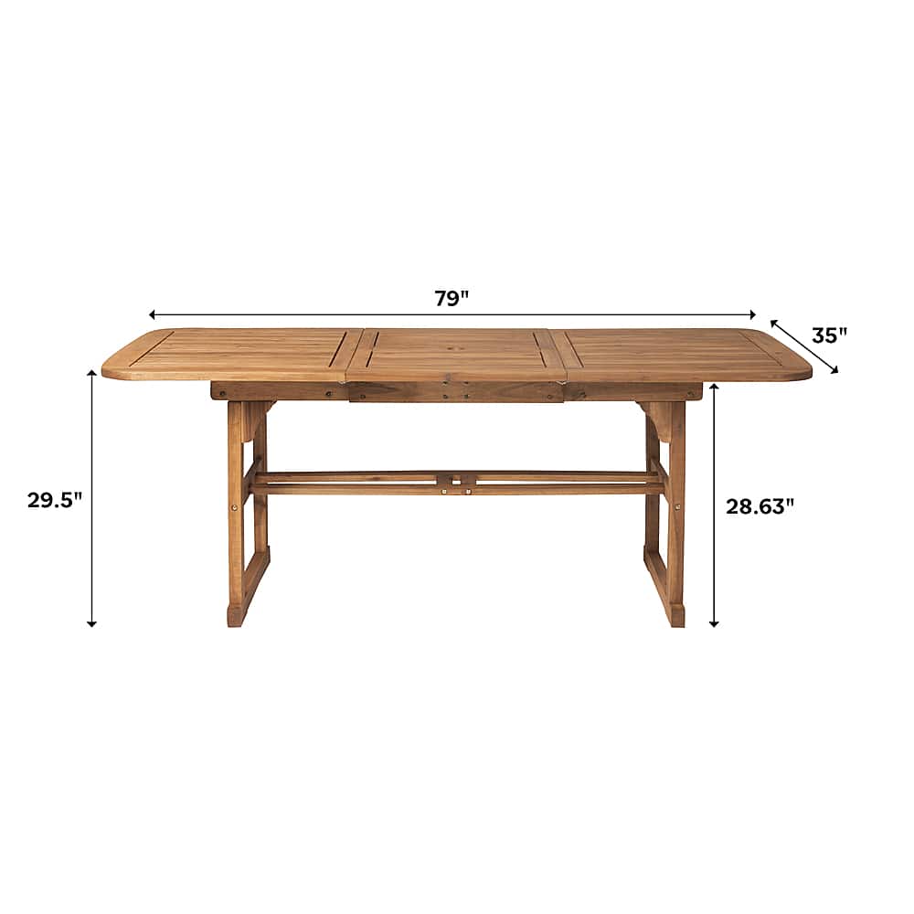 - A:Answer The Cypress Acacia Wood Outdoor Dining Table is 79 inches long, 35 inches wide, and 30 inches high.