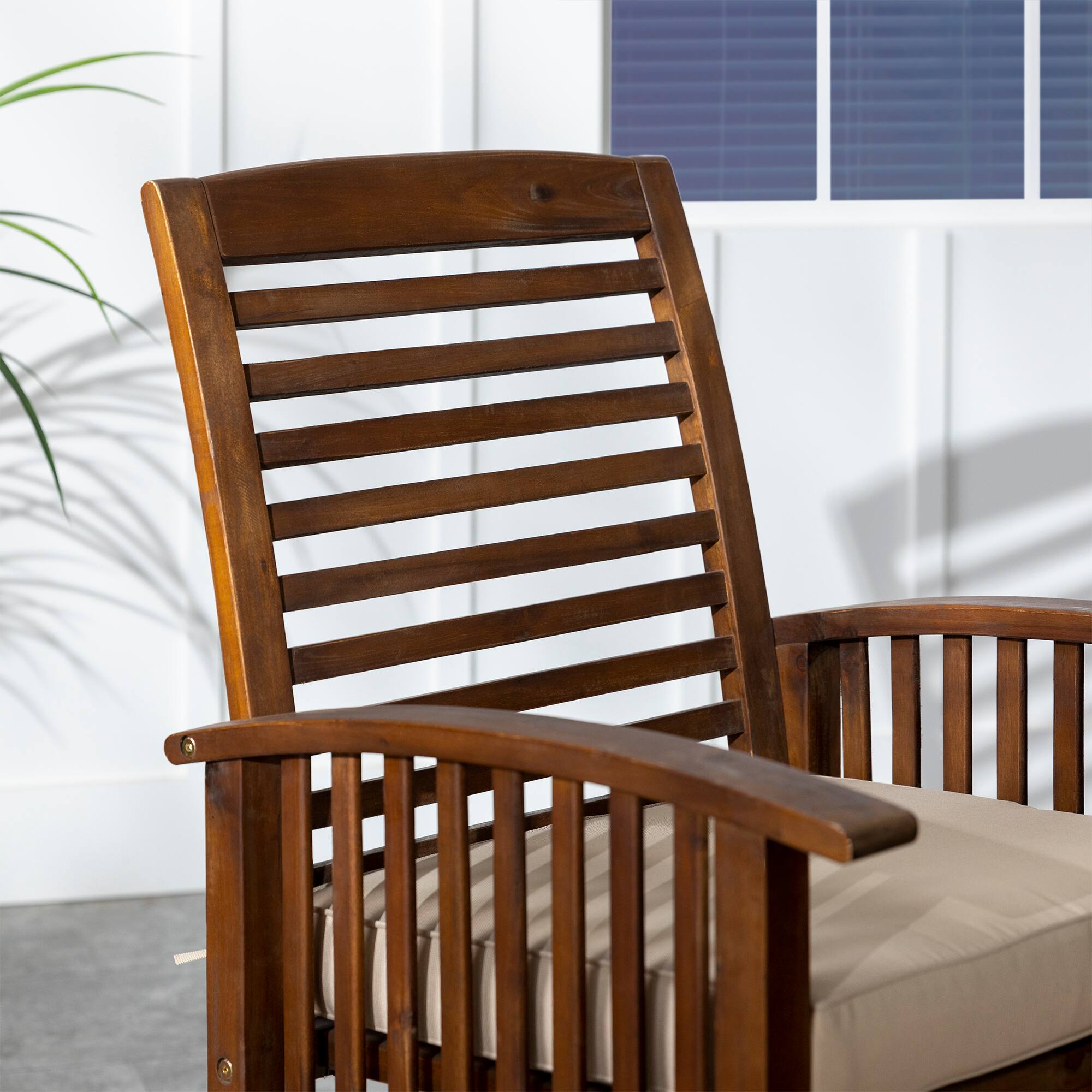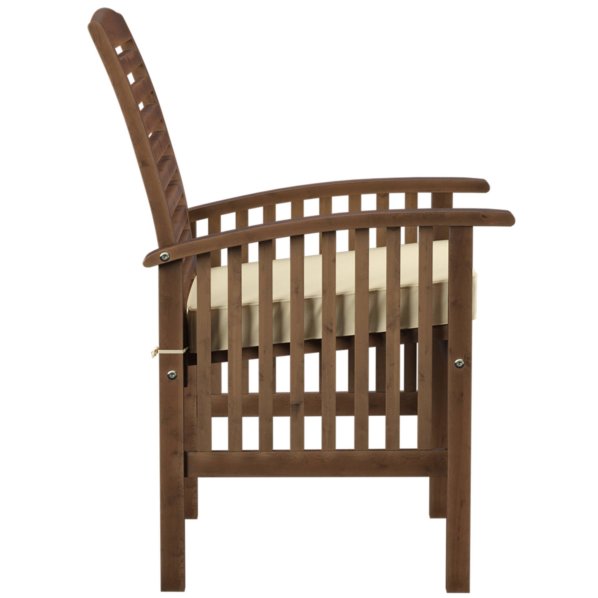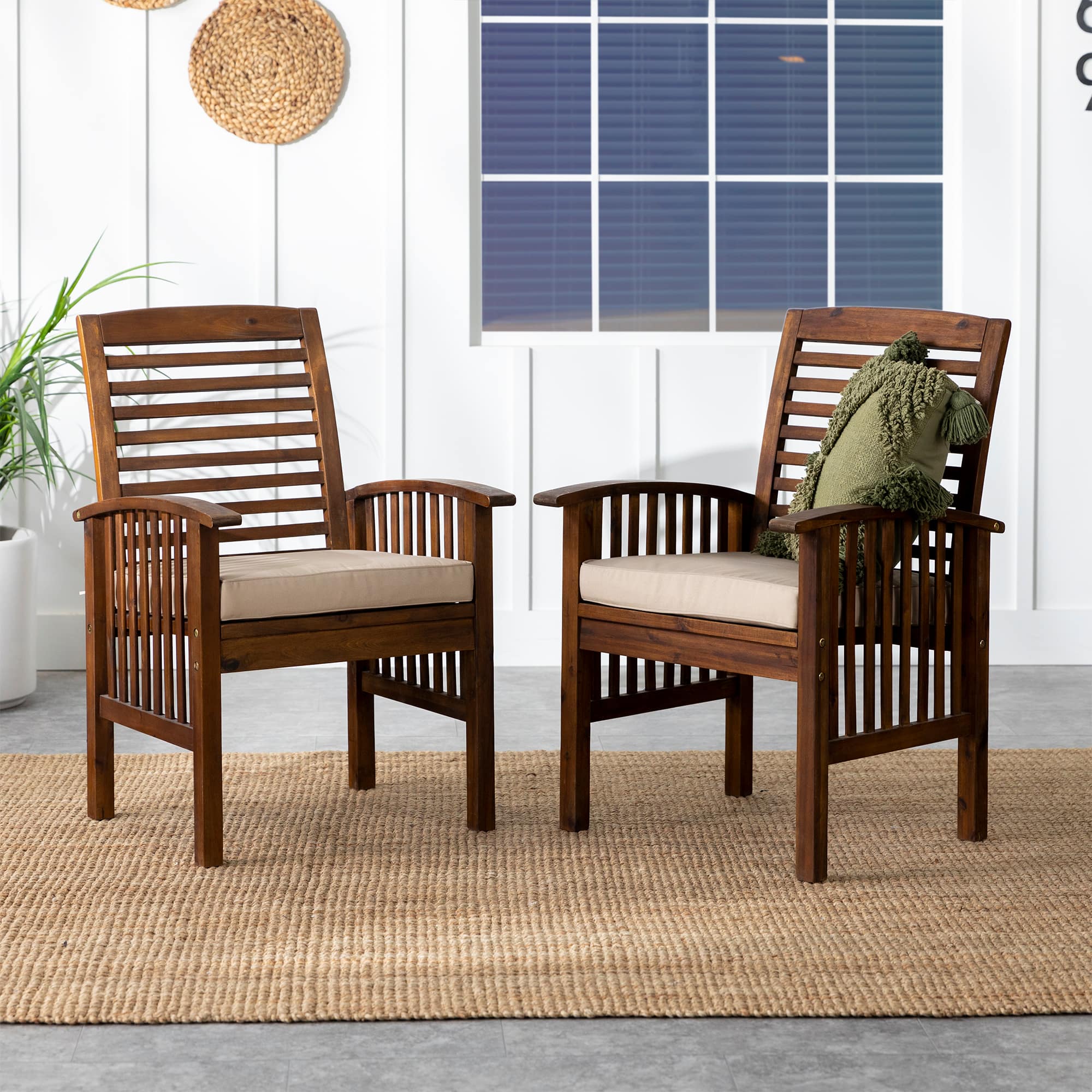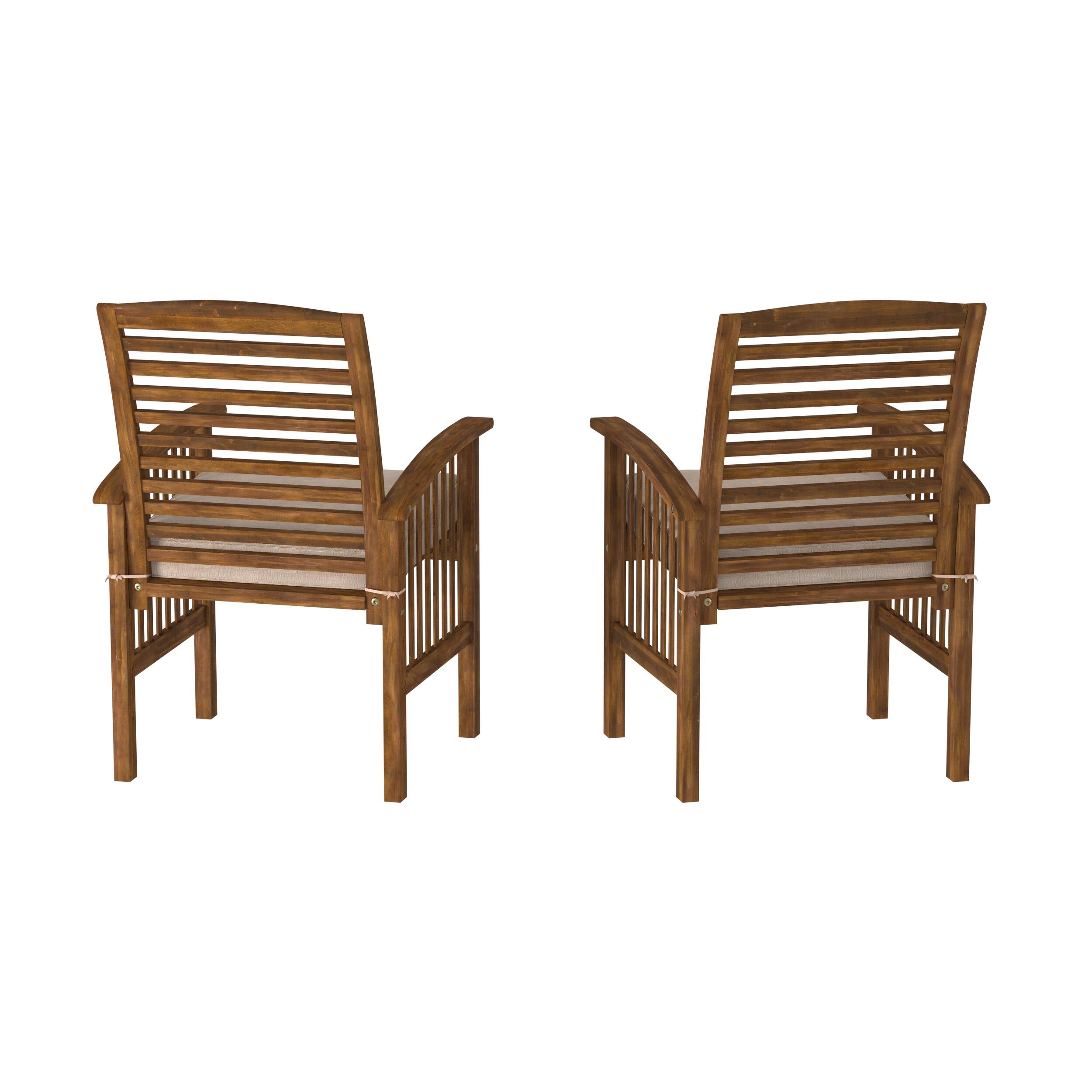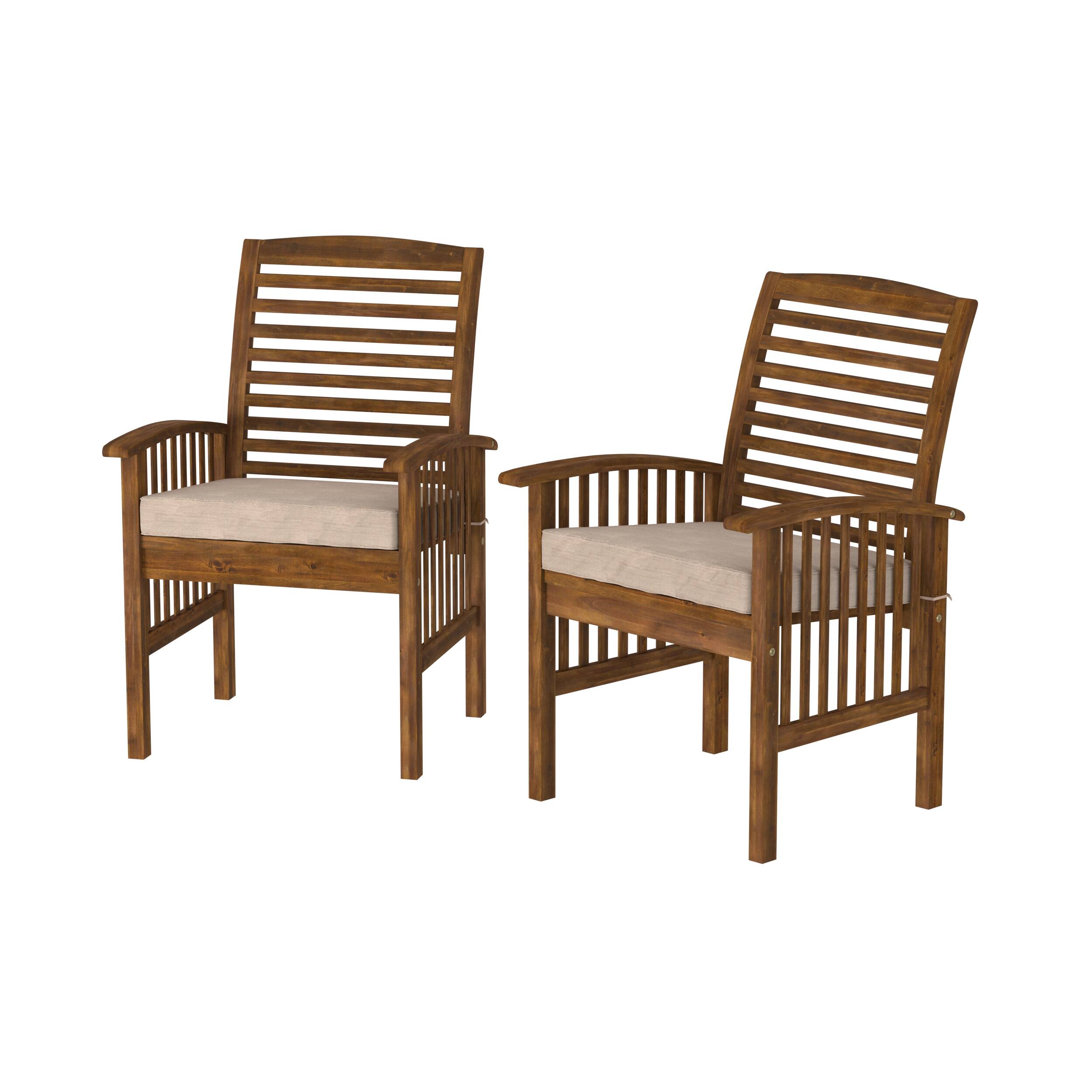 - A:Answer The stylish patio chairs are crafted from acacia hardwood with a stained finish.