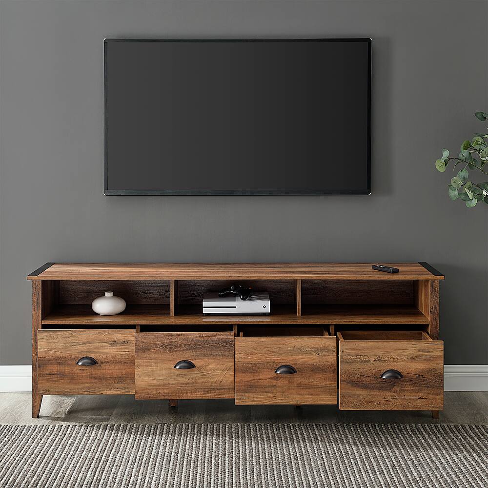This question was asked about the related product: Walker Edison - Industrial Farmhouse TV Stand for TV's up to 80" - Grey Wash