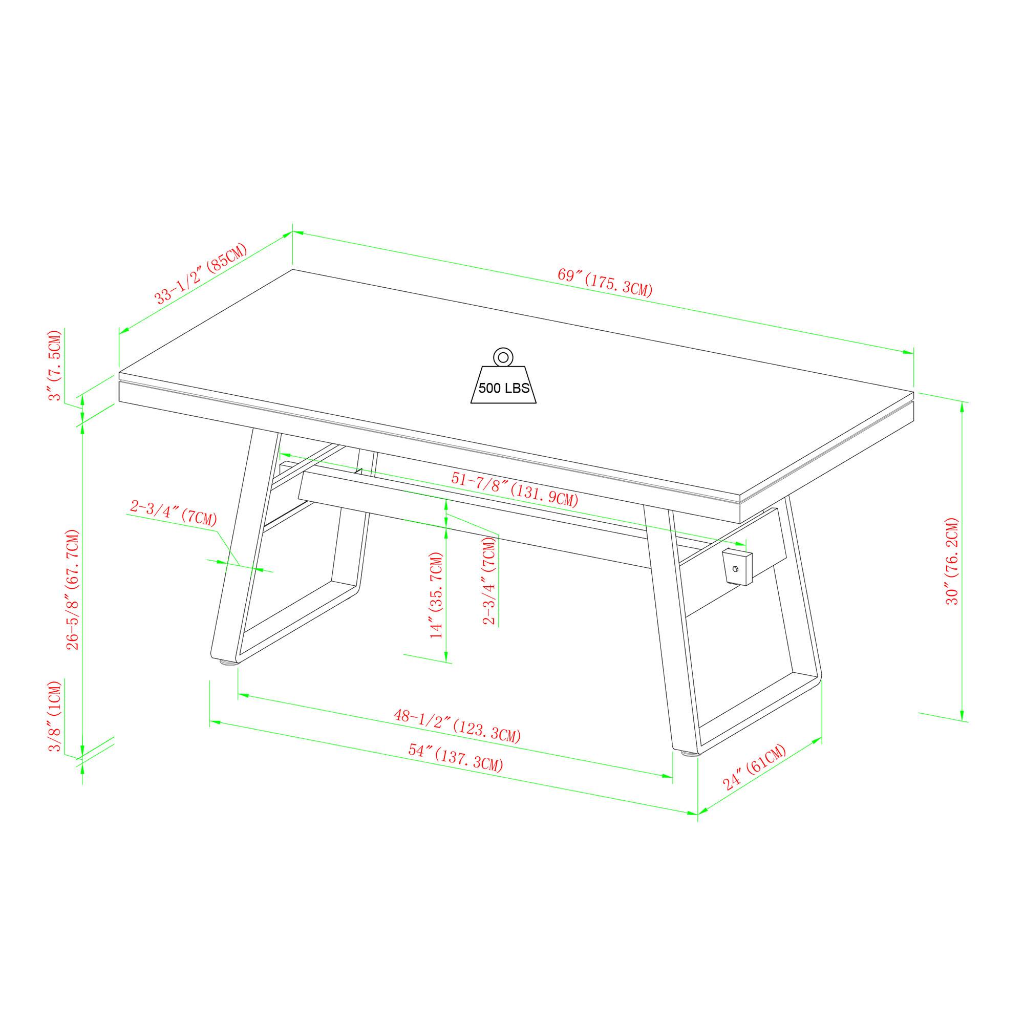- A:Answer The table is 30 inches high, 33.5 inches wide, and 69 inches deep.