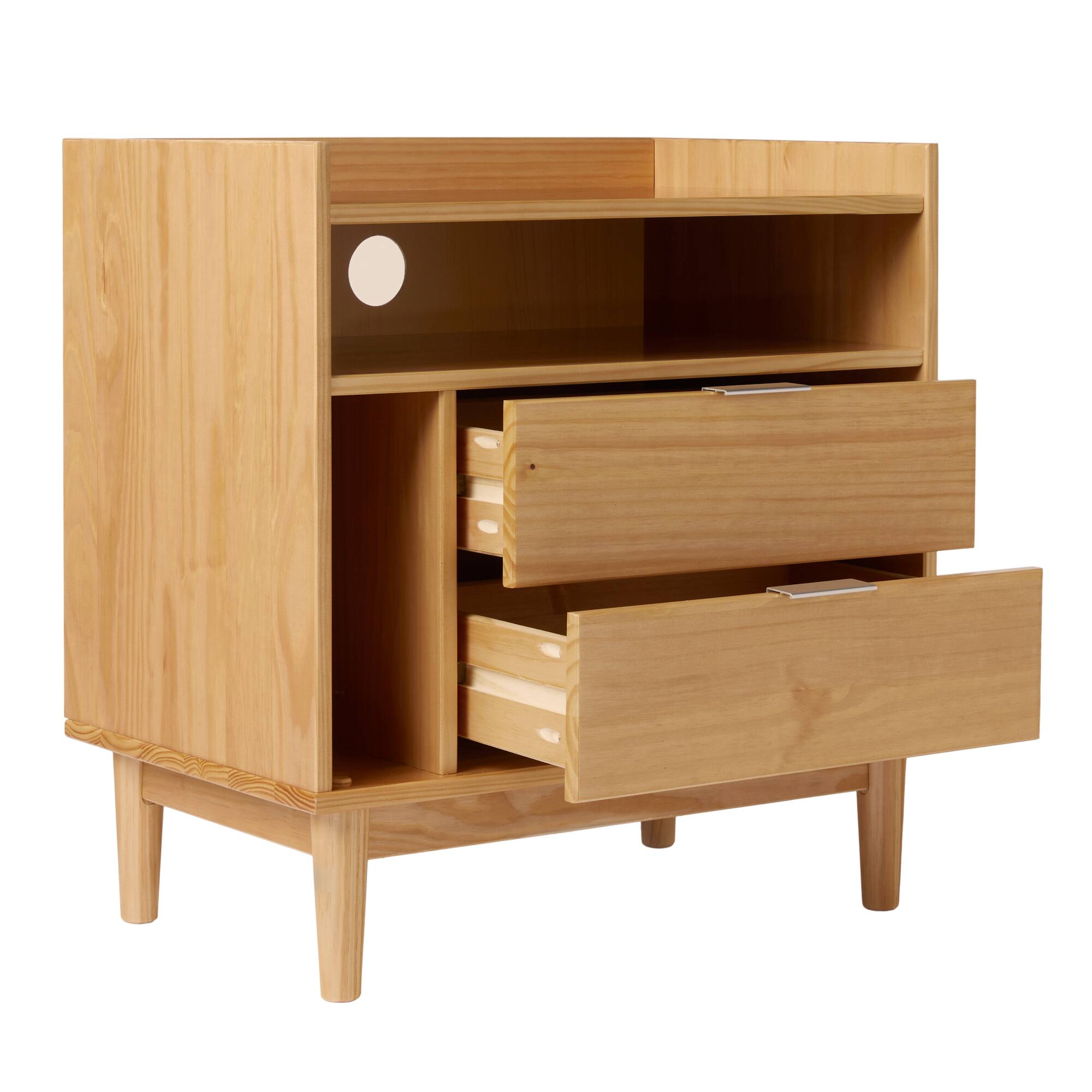 - A:Answer This nightstand features two spacious drawers for keeping your belongings organized.
