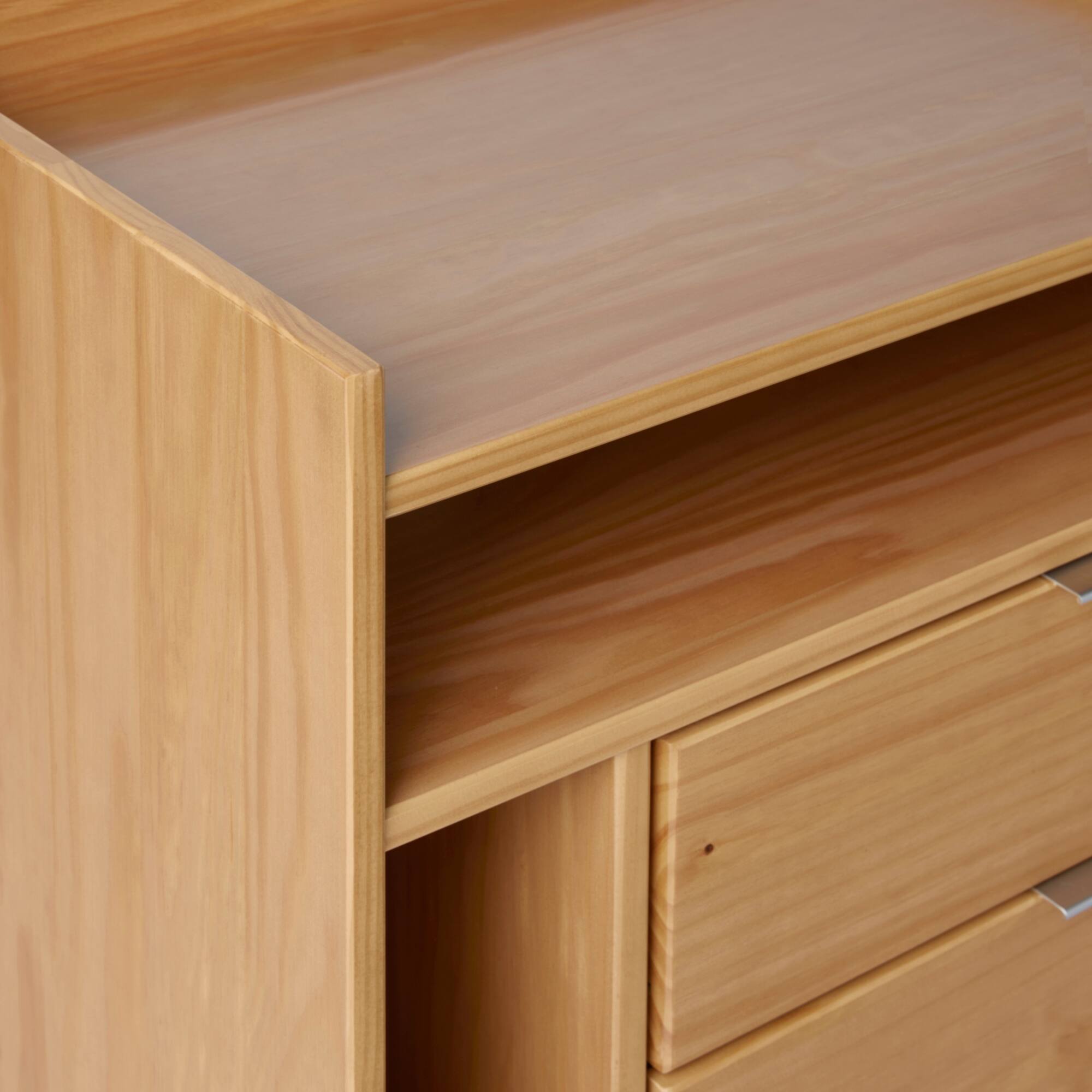 - A:Answer The tabletop material for this mid-century modern nightstand is solid pine wood.