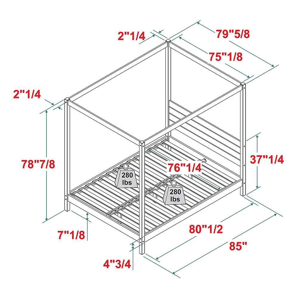 - A:Answer The bedframe has a maximum weight capacity of 560 pounds.