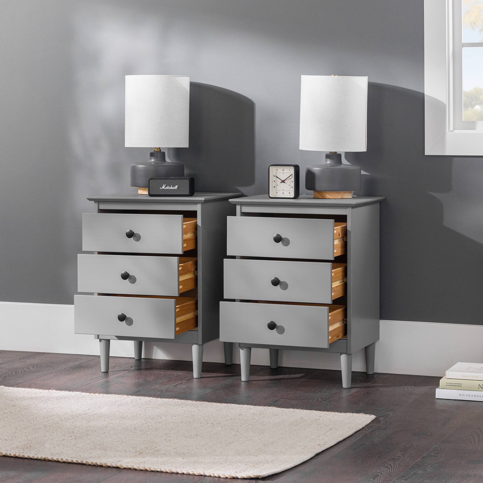 - A:Answer Each nightstand has three drawers.