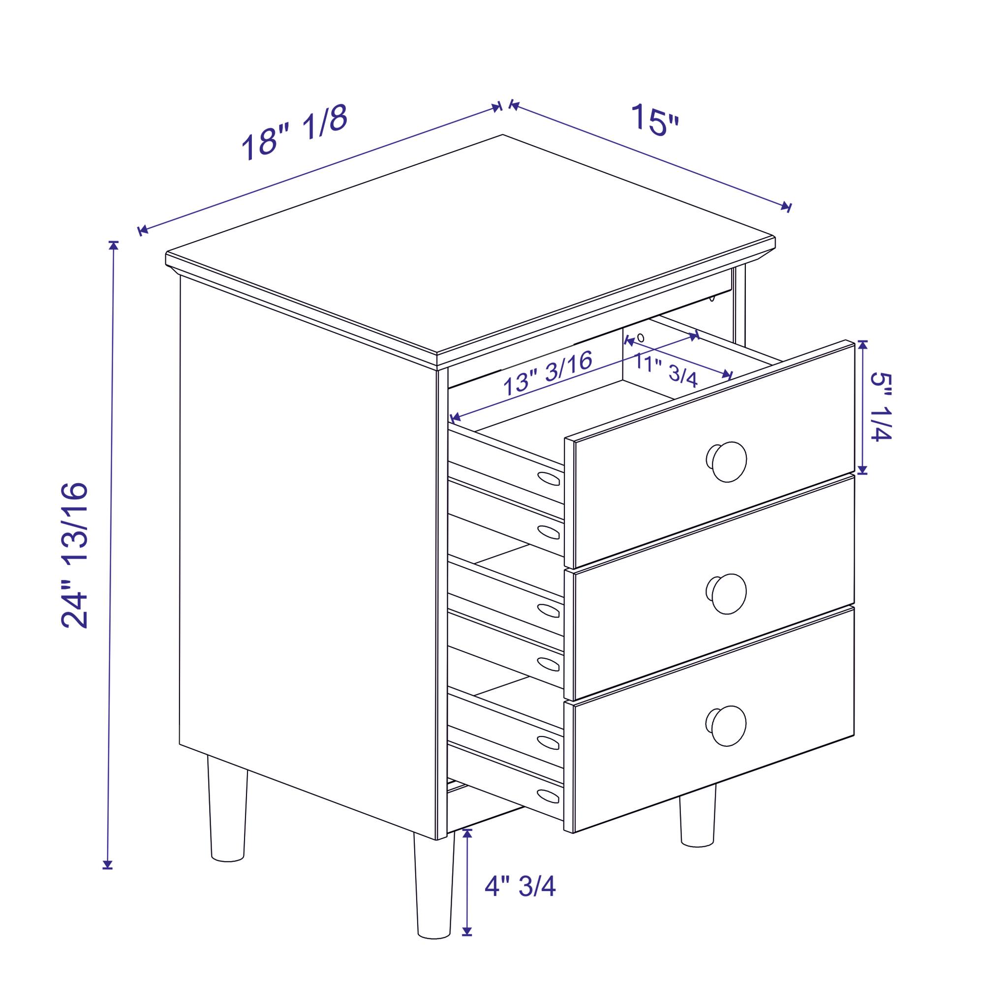 - A:Answer The nightstand is 25 inches high, 19 inches deep, and 15 inches wide.