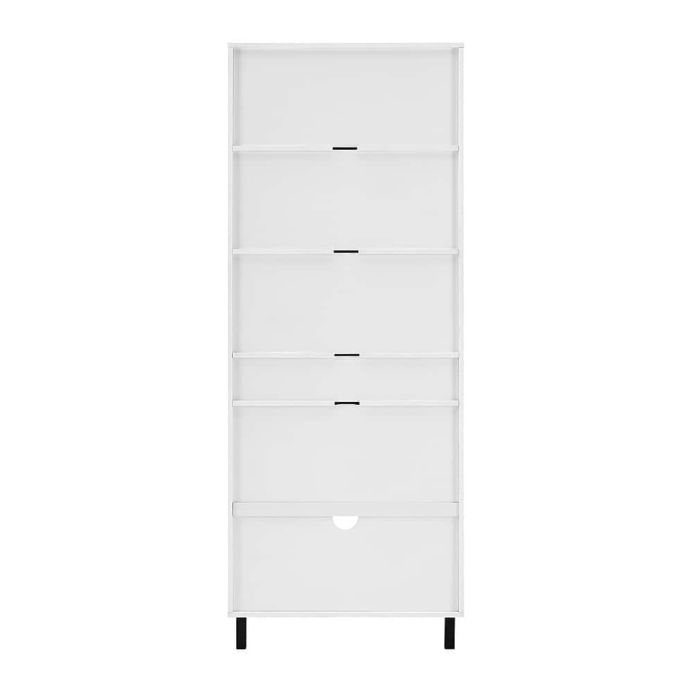 - A:Answer Each shelf of the Walker Edison Modern Drawer 5-Shelf Tall Bookcase can hold up to 50 pounds.