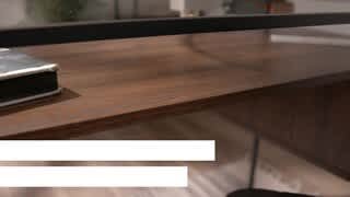 - A:Answer The desk has a metal base and an MDF desk top. The desk also features a tempered glass tabletop.