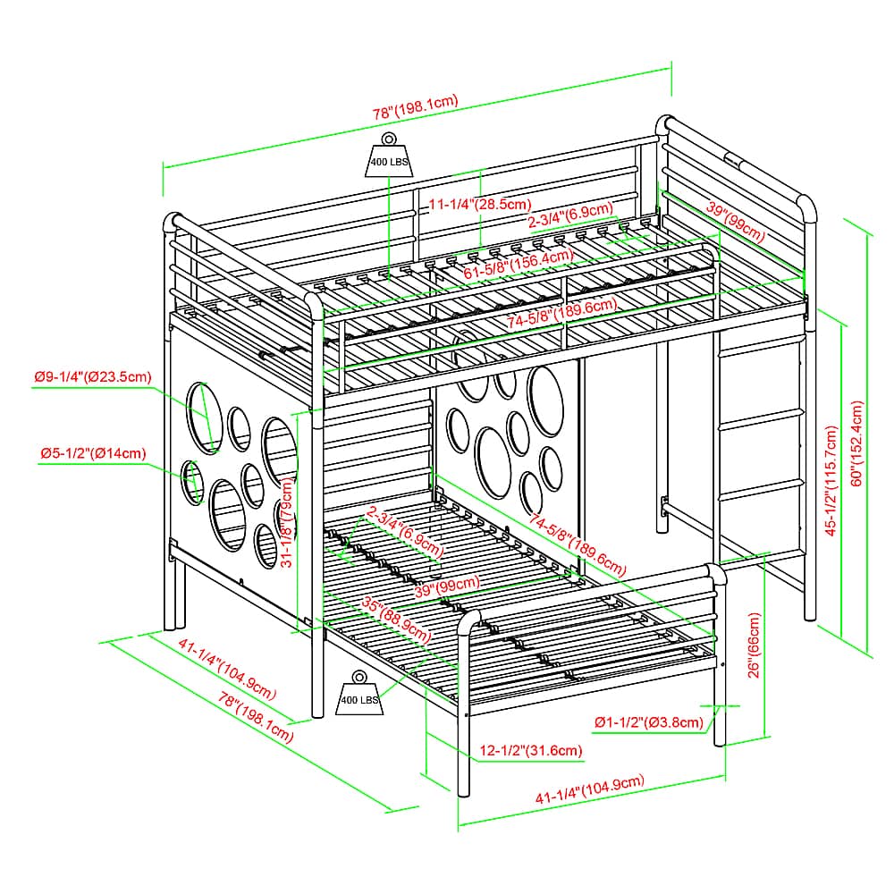 Q: QuestionWhat are the dimensions of the bunk bed?