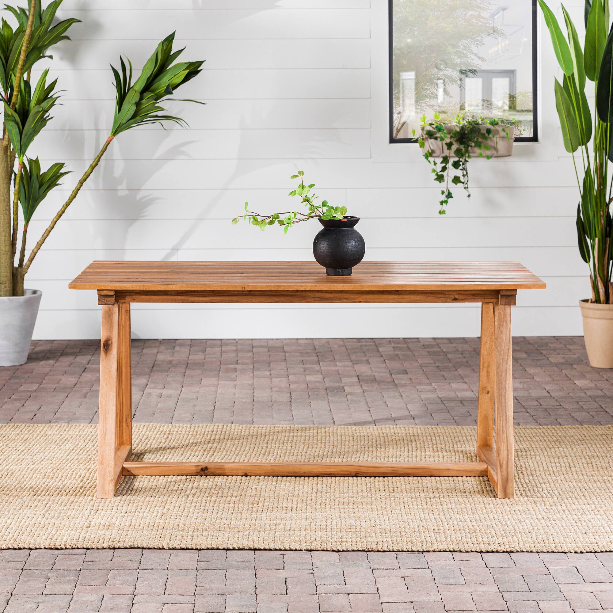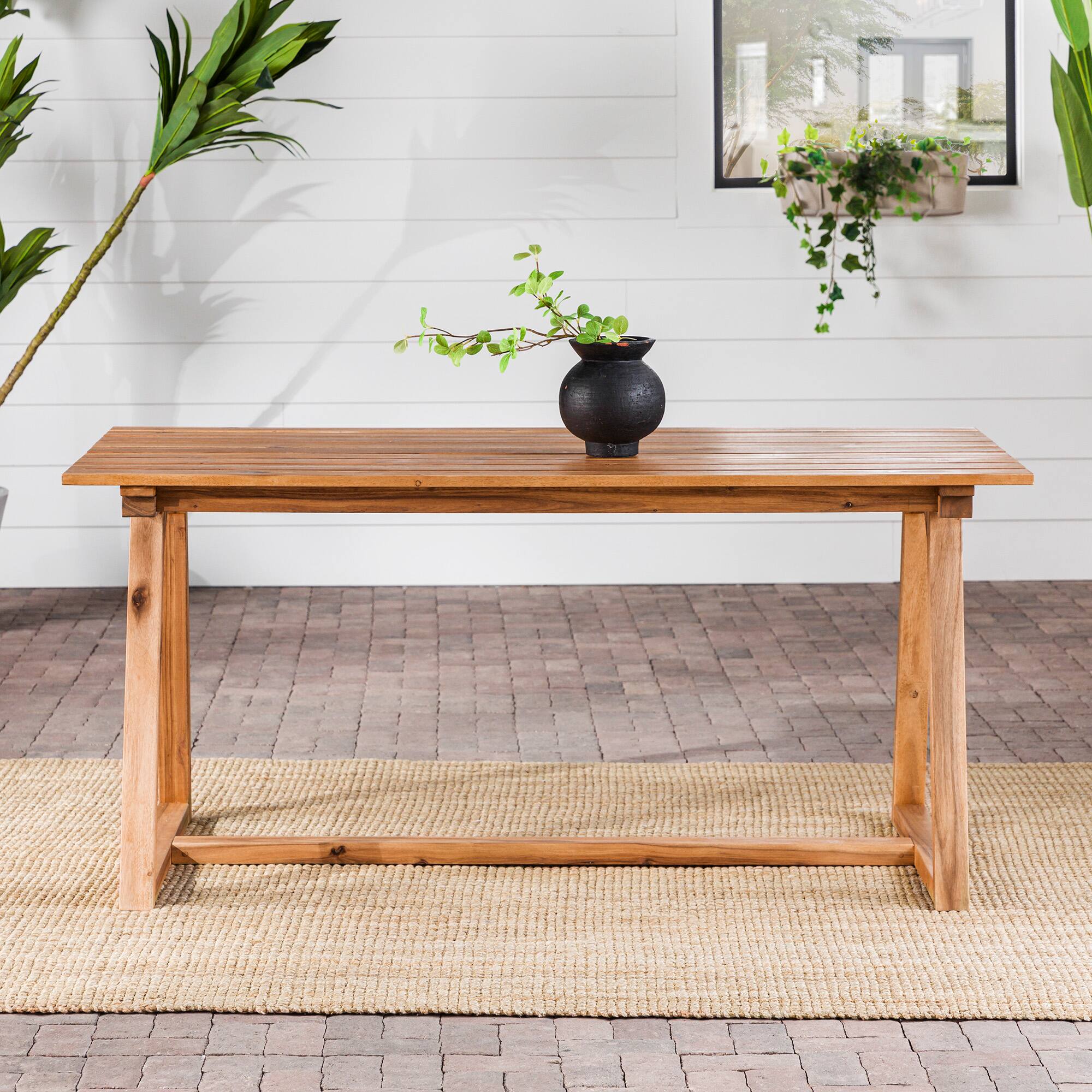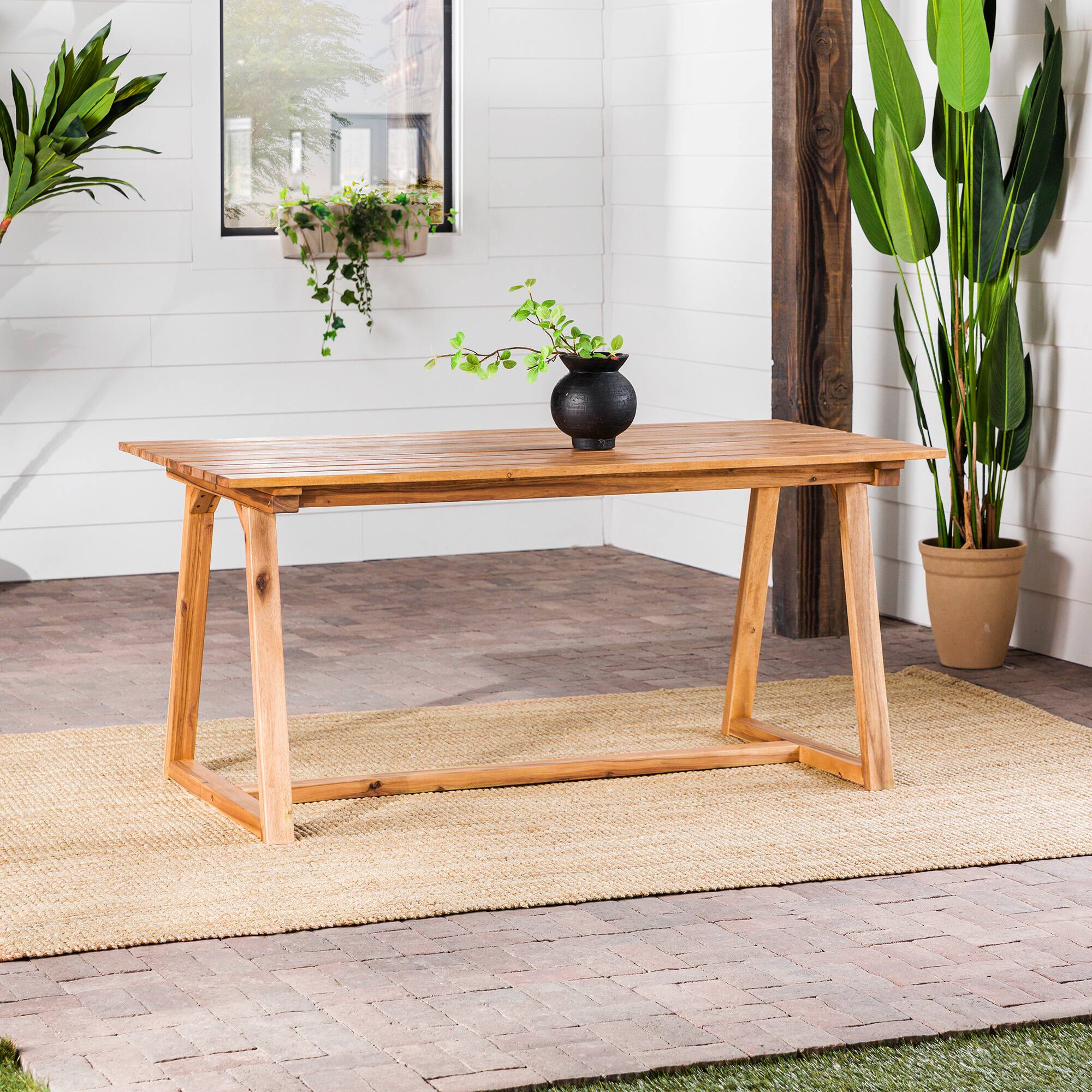 - A:Answer This dining table will effortlessly upgrade your favorite space, whether it's displayed inside or outdoors.