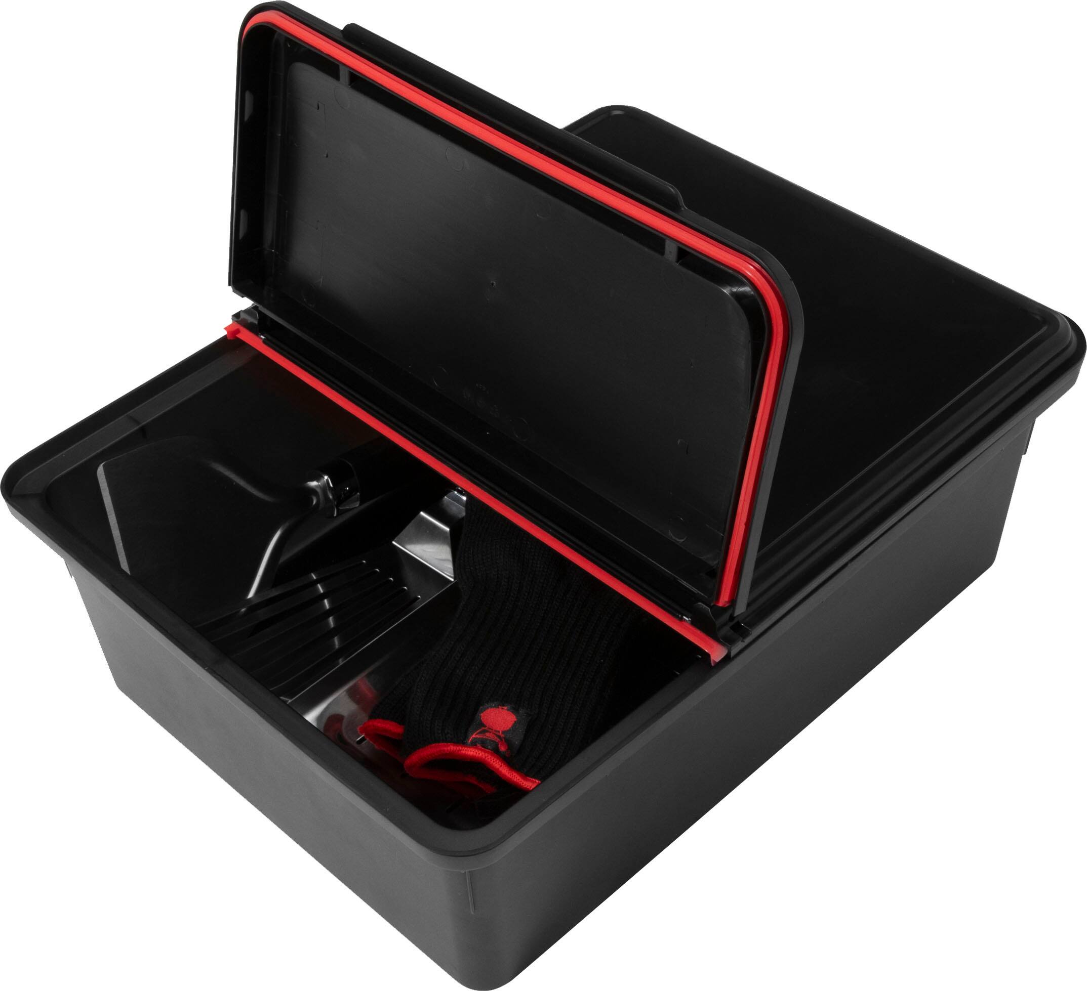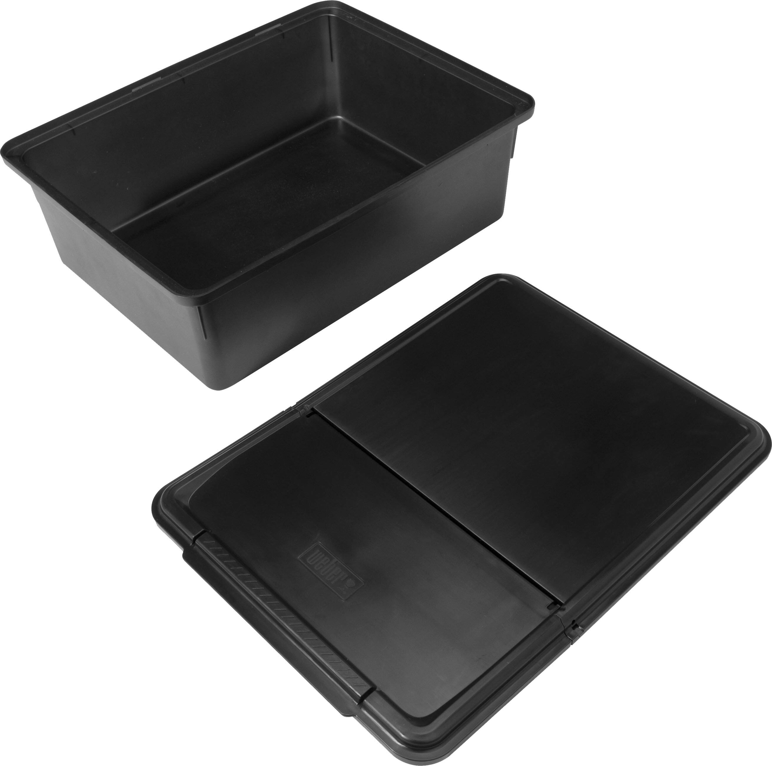 - A:Answer The Weber Works Outdoor Storage Bin is currently only compatible with the Weber Slate 30" and 36" Griddles. However, more accessories and Weber grill compatibility are coming soon.