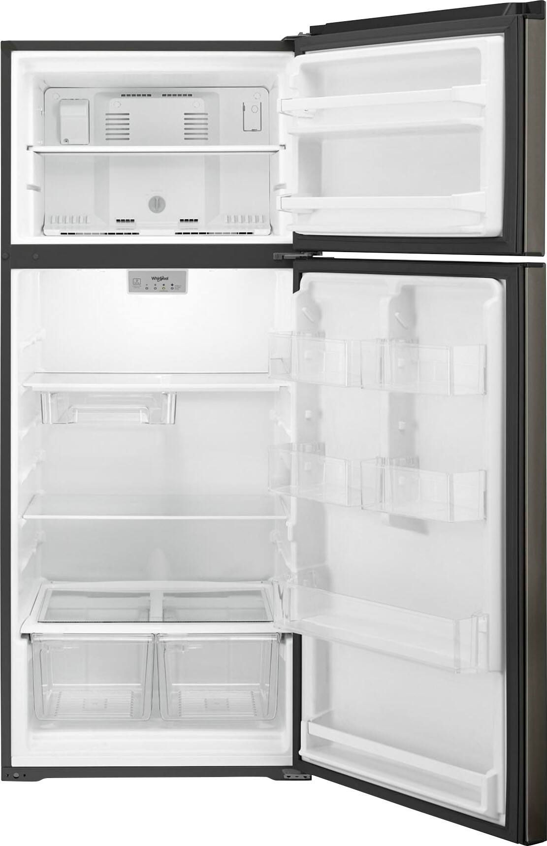 This question was asked about the related product: Whirlpool - 17.7 Cu. Ft. Top-Freezer Refrigerator - Black