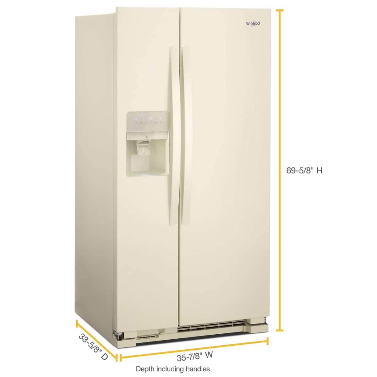 A:Answerpopeye, the dimensions of this Refrigerator are: 69 5/8 inches tall, 35 7/8 inches wide, and 33 5/8 inches deep. Hopefully, this information is beneficial to you. Thank you for your inquiry regarding our Whirlpool Appliances!
