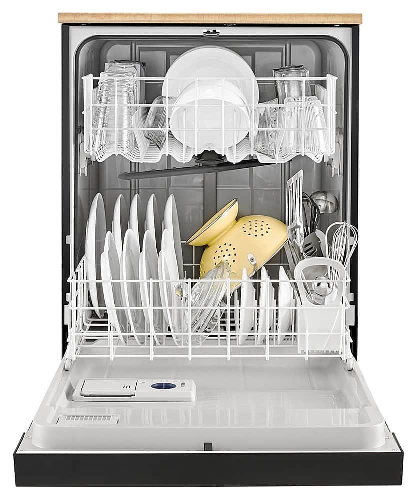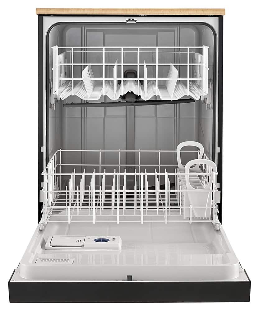 - A:Answer This Whirlpool portable dishwasher has a full-length silverware basket to provide plenty of room for utensils.