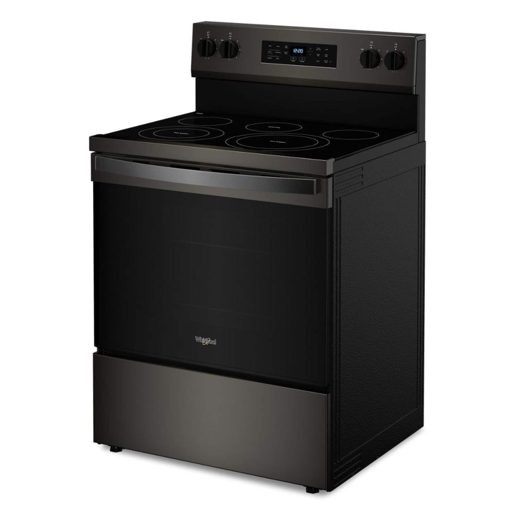 This question was asked about the related product: Whirlpool - 5.3 Cu. Ft. Freestanding Electric Convection Range with No Preheat Air Fry and Air Baking - Black