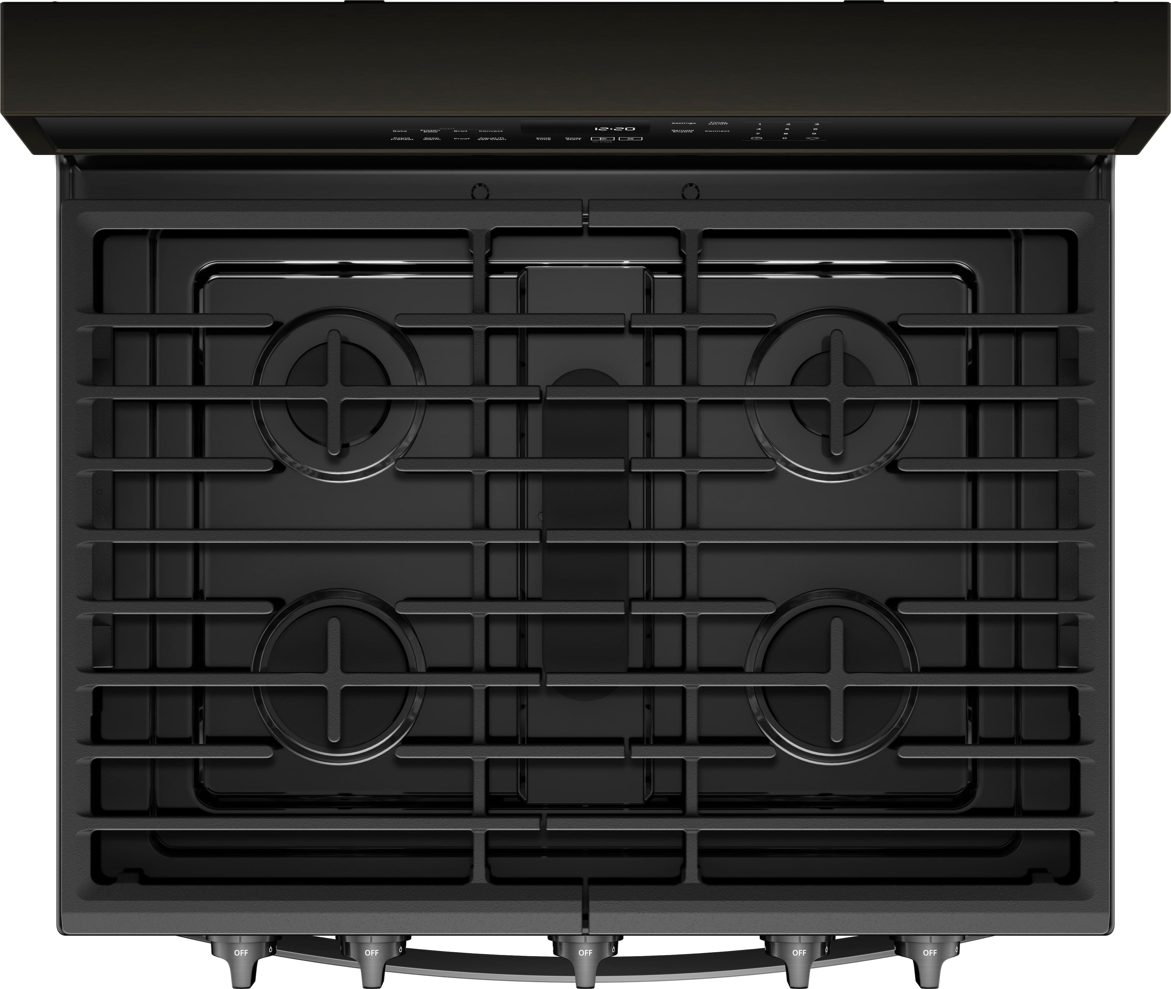 - A:Answer According the info here on Lowes.com for the exact same model, it is both fingerprint resistant and has cast iron grates. https://www.lowes.com/pd/Whirlpool-5-Burner-5-8-cu-ft-Self-Cleaning-Convection-Freestanding-Gas-Range-Fingerprint-Resistant-Stainless-Steel-Common-30-in-Actual-29-875-in/1000307103