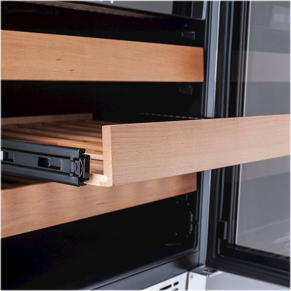 - A:Answer This refrigerator has five wooden shelves to store your wine collection.