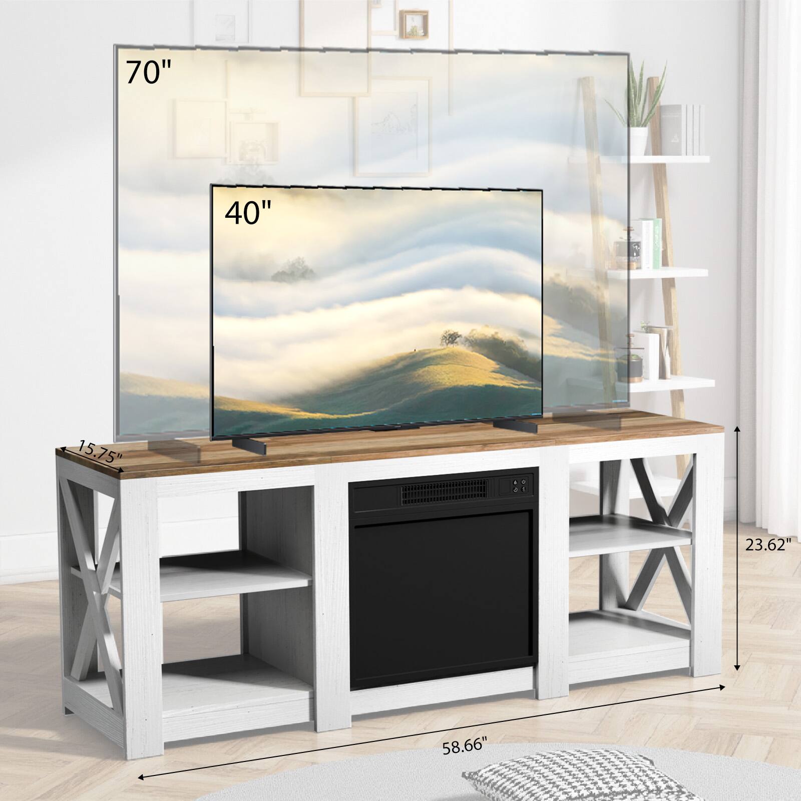 Bestier - 63"W fireplace TV stand for 70" TVs, 36"W electric fireplace, storage & LED lights - Black$249.99Your price for this item is $249.99$439.99The comparable value for this item is $439.99- $199.99Your price for this item is $199.99$239.99The comparable value for this item is $239.99