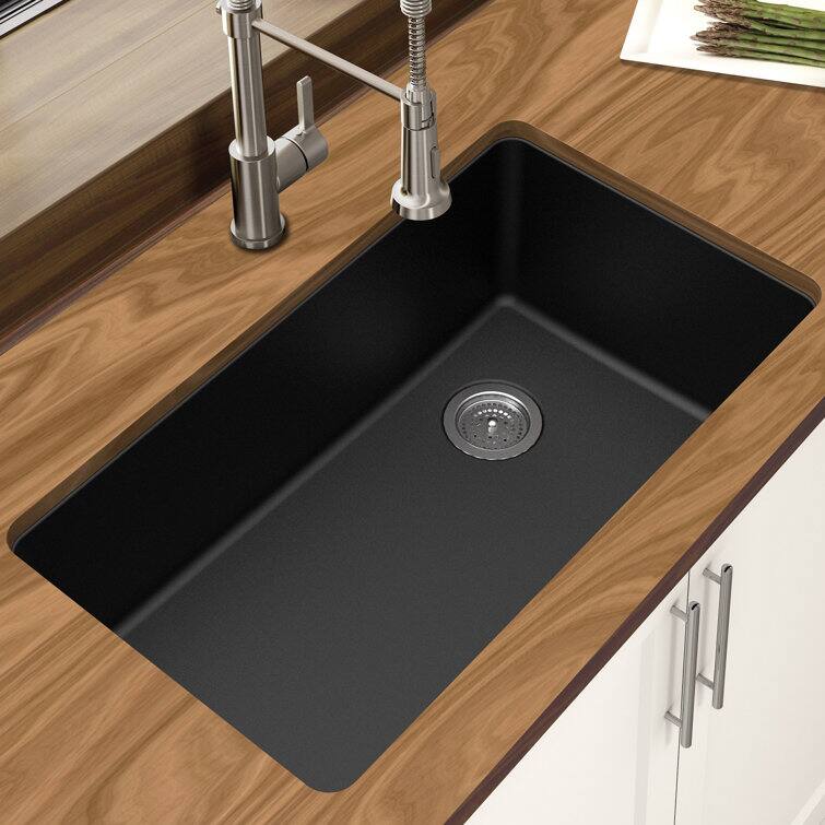 Winpro - Undermount Granite Composite 0 Faucet Hole 33 in. L x 18-3/4 in. L x 9-1/2 in. Single Bowl Kitchen Sink - Black