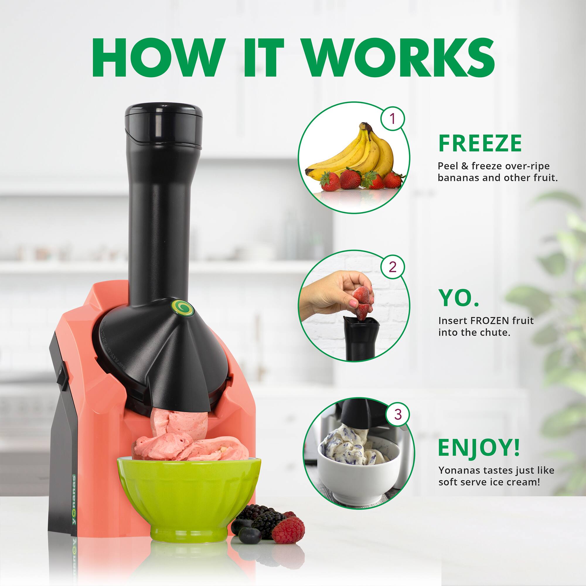 • Answer The Classic Vegan Non-Dairy Frozen Fruit Soft Serve Dessert Maker from Yonanas includes 36 recipes. These recipes enable users to create simple, homemade desserts such as pies, parfaits, and sorbets. The dessert maker also allows users to create their own healthy, vegan, keto, and dairy-free treats.